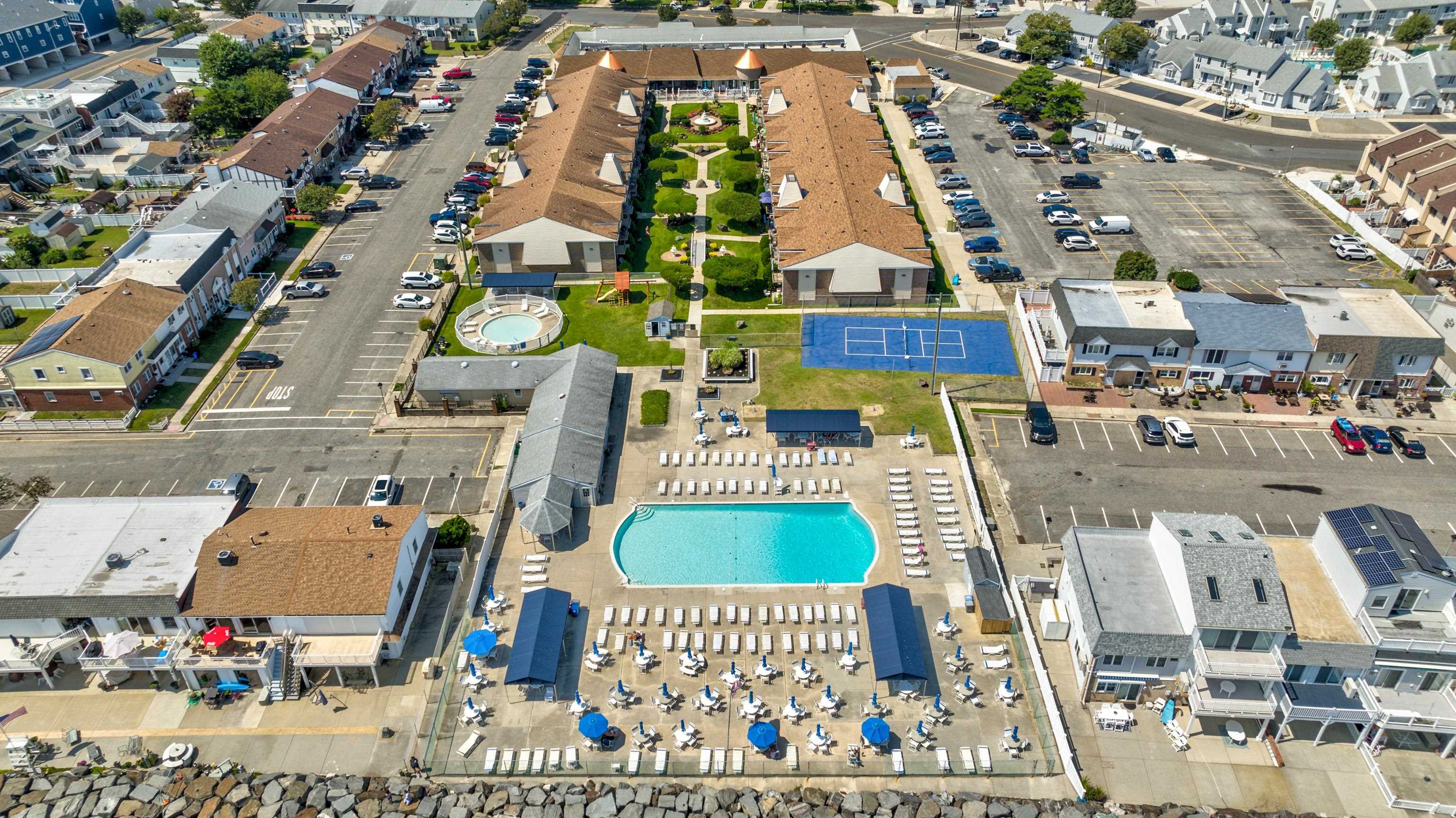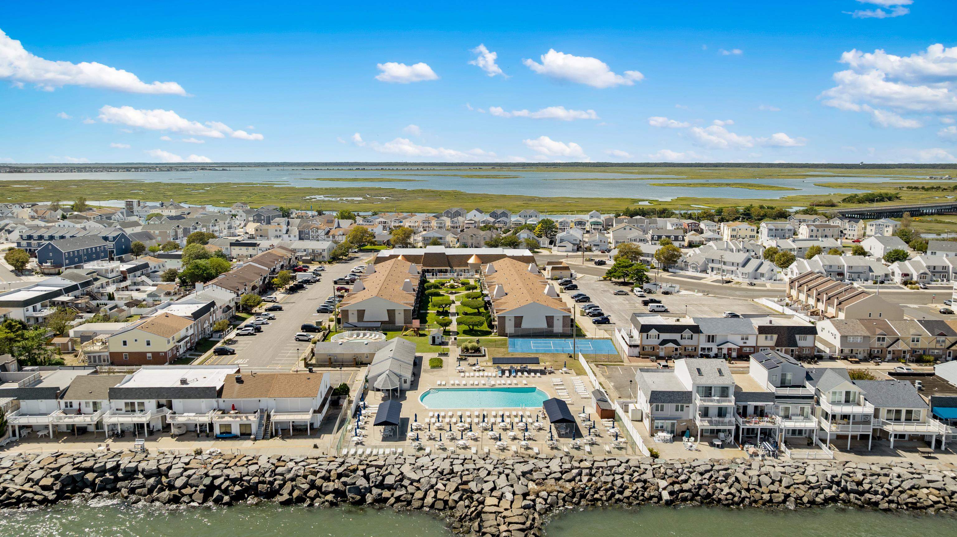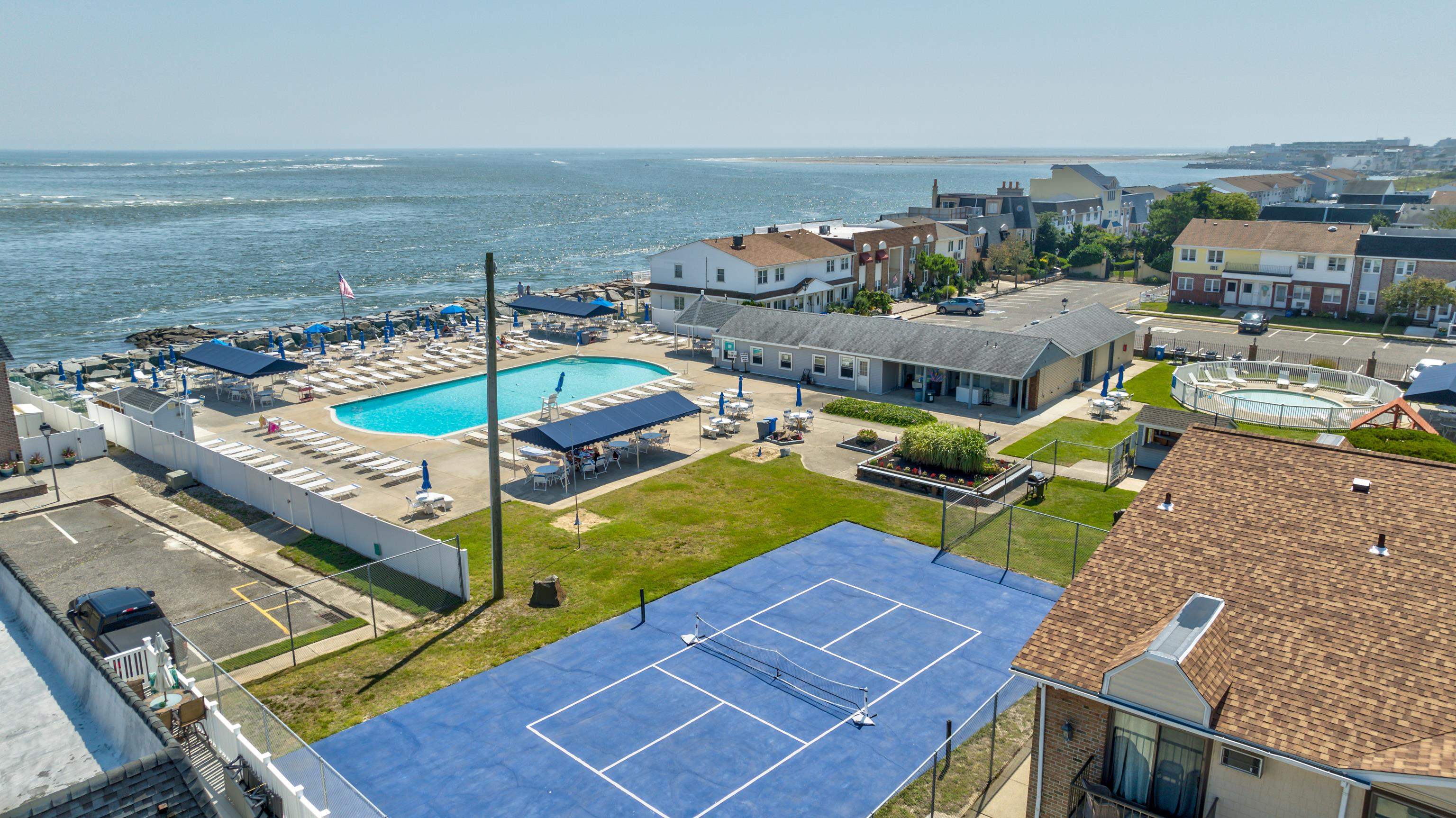 Welcome to the Lodge! Now you'll be ticket holders to front row seats and views of the Atlantic Ocean in the Anglesea section of North Wildwood. This unit is well suited for an easy lifestyle with one big open room and a private bathroom. There is ample space for sleeping and relaxing in the living room along with a space for dining just outside of the kitchenette. There is laminate flooring in the main living area and ceramic tile in the kitchen and bath. The wall mounted air conditioner is just four years old. The unit is completely heated for anyone wishing to live or visit year round. The front door is slotted for air circulation. From this location you are conveniently close to the pool. The Lodge offers many amenities. There is a large inground pool, a kiddie pool, tennis courts, grills, a playground, a clubhouse, laundry room and plenty of on-site parking. 4 pool passes and 4 parking passes are allowed each unit. There are water views from your very own balcony. There is also an on-site management company to keep things running smoothly and guarantee the enjoyment of all owners. With low condo fees and direct frontage on the Atlantic Ocean, this is a great spot for year-round and seasonal usage.