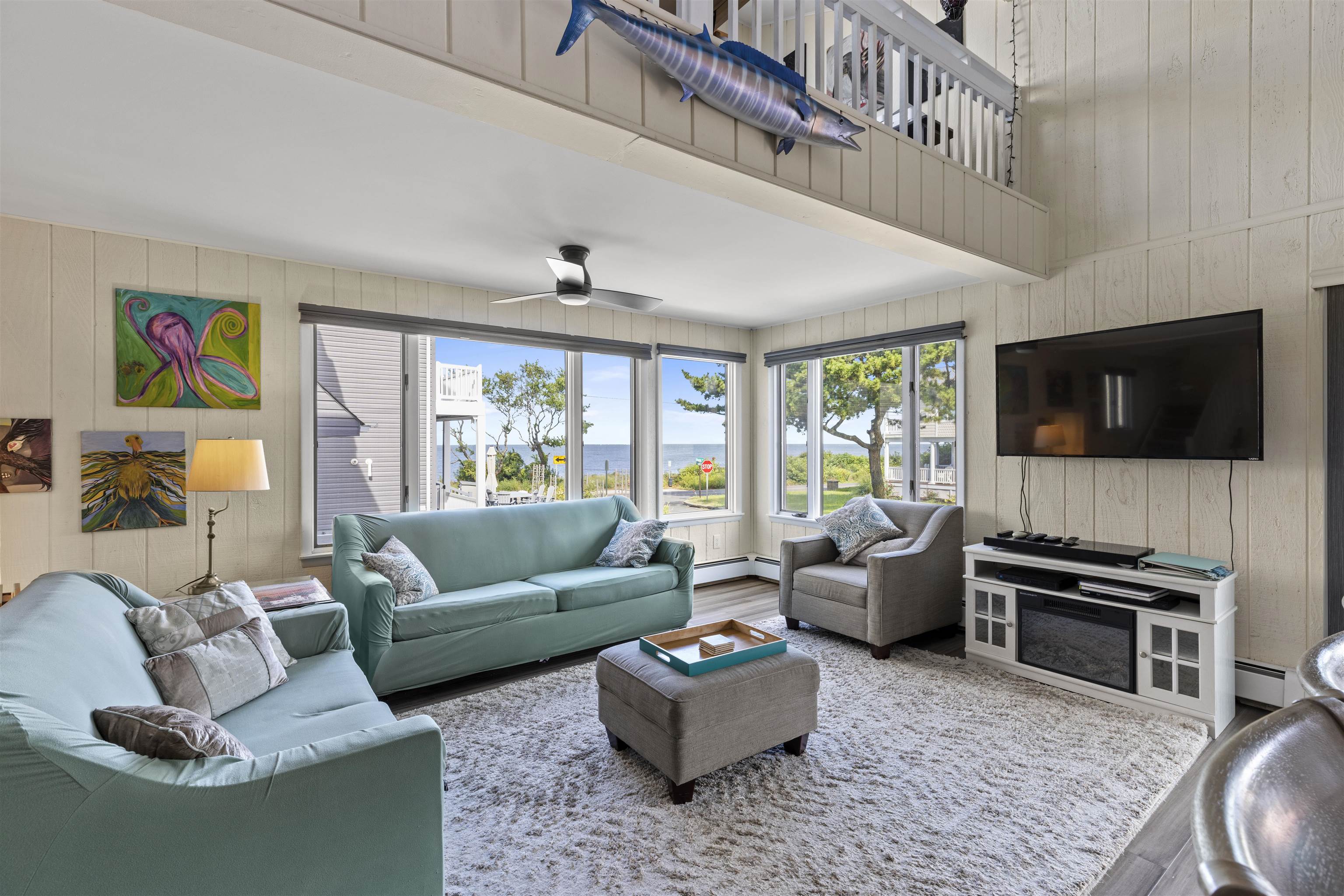 Welcome to your beachy escape--The current owner has begun packing. The owner has done recent updates to assist in selling and the new buyer will be responsible for their finishing touches in the future. This light-filled 3-bedroom, 2.5-bath coastal home blends relaxed with artistic flair, just a few barefoot steps from the shores of the Delaware Bay. Inside, breezy open spaces flow with natural light and bay views, creating a serene vibe from the moment you walk in. The main level features a spacious living room with chill, coastal energy and a chef-worthy kitchen that opens to a sun-drenched deck perfect for outdoor dinners, sunset sips, or sketching by the sea breeze. Two cozy bedrooms and a freshly renovated full bath complete the first floor, offering restful nooks with easy access to the heart of the home. Upstairs, a bright and airy loft overlooks the living space and captures dreamy water views ideal for a home studio, reading retreat, or guest overflow. The primary suite feels like a seaside sanctuary with its wall of windows, private en-suite bath, and convenient second-floor laundry. Wake up to water views and let the day unfold from there. There is a full mostly finished basement with new wall to wall carpet with Hot water baseboard heat and a Window air conditioner. easy access to the basement with indoor & outdoor access. Outside, the vibe is just as dreamy. A charming front porch invites morning coffee rituals, while the side porch and rear patio are perfect for creative gatherings or quiet moments in the salt air. The backyard is a private oasis, complete with a saltwater pool and hot tub for year-round relaxation or spontaneous pool parties under the stars. Need a spot for your surfboard, beach cruisers, or garden tools The detached shed has you covered. Bonus This gem is not in a flood zone. Don t miss this chance to own a little piece of the bay where creativity flows and beach life begins. Not counted in the Approx Living Square footage is the full basement, approx. 1104 Sq. Ft Exclusion list to follow