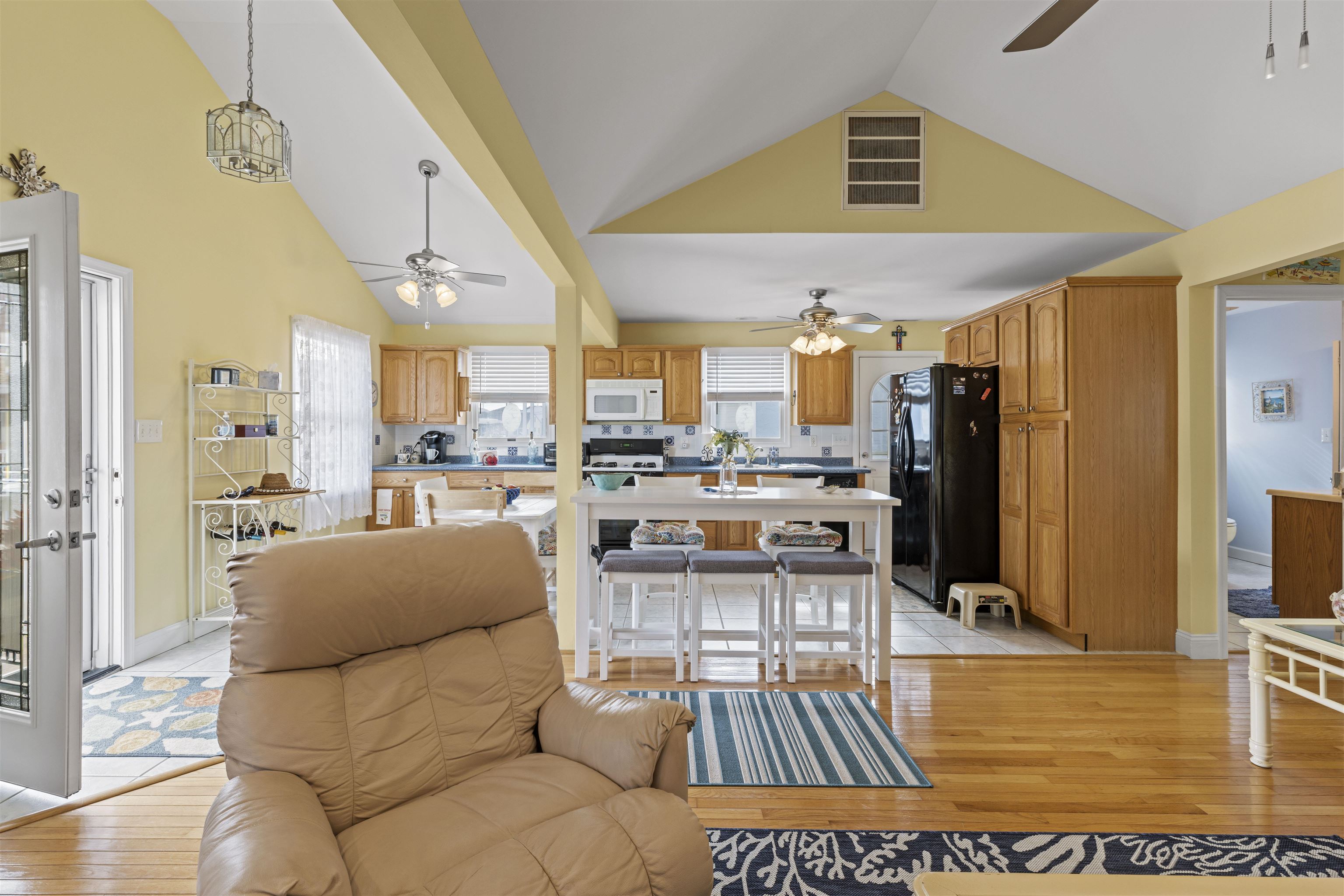 Welcome to Shore Living !! Single Family Home on a quiet one-way street on the Bayside of Wildwood. This is a charming year round home or summer retreat. This home features 2 large Bedrooms 2 Baths open living concept with beautiful hardwood floors. Downstairs has an open kitchen living room area with a gas fireplace. Full bath with laundry closet, large bedroom with sliders leading to outside deck. Upstairs is a very large Master Suite with walk-in closet, full bath and a covered balcony to sit and relax! Outside features a fenced in yard, large deck with above ground pool, tiki hut for outdoor seating, and 2 storage sheds. Enter thru the front porch or side door thru kitchen. Convenient one car driveway and front street parking. Great neighborhood, New park, and walking path coming soon! This Shore home will not last long!! Partially furnished, turnkey!