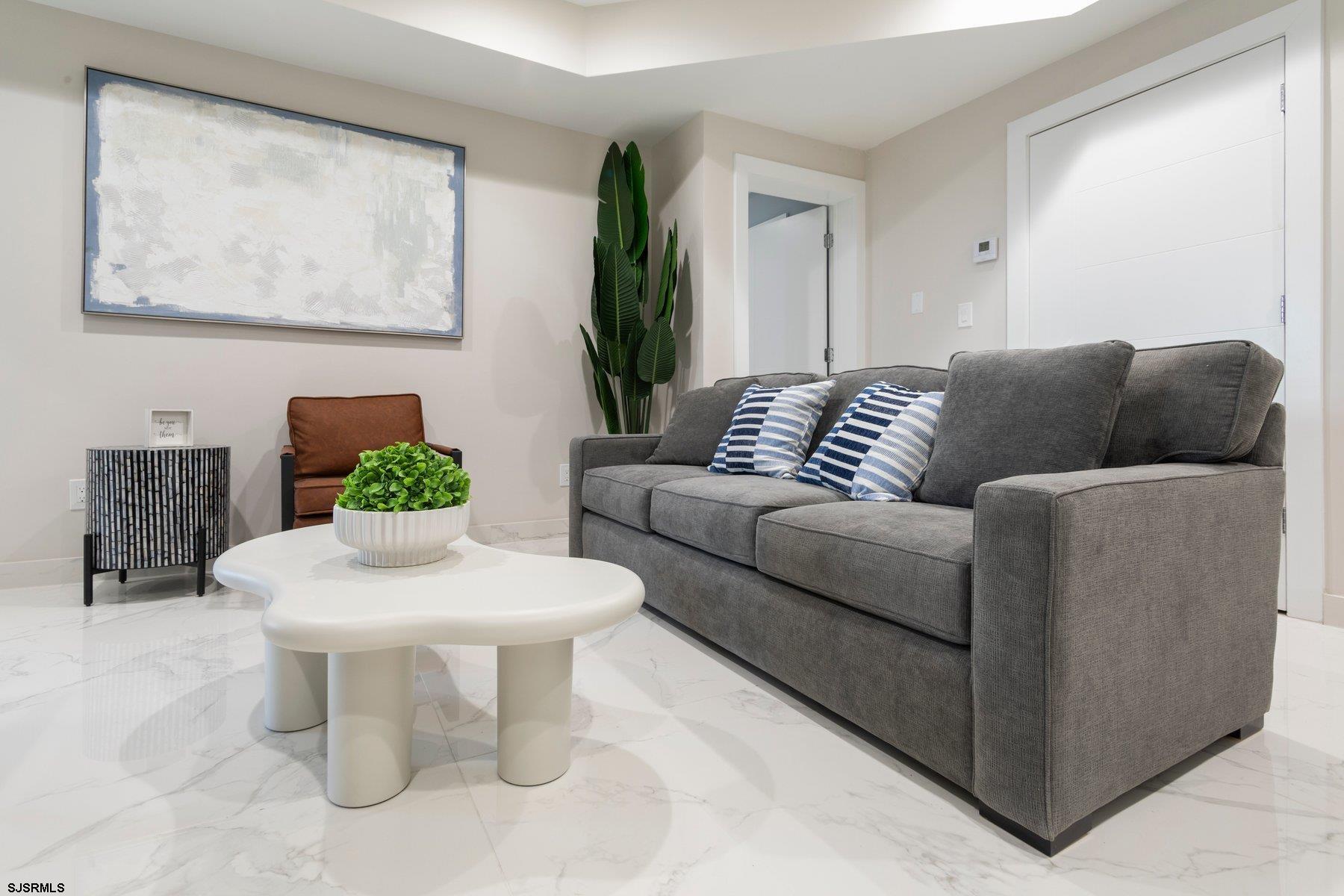 Midterm Rental available until May 15th - Get transported to the islands of Greece with this 3rd floor unit at the Ammos Luxury Living located on Atlantic Avenue in Ventnor across the street from the beach block and famous boardwalk. The building was meticulously renovated from the moment you step into the building all the way into the units with new large format tile. Enjoy peace of mind with a Private Secured Entrance and Keypad entry for the ultimate convenience and safety. The apartment itself furniture was hand picked to feel more like a boutique hotel than a rental. It comes with stainless steel appliances, in unit washer, dryer, central air and the price includes all utilities, making your winter stay hassle-free. Property has elevator access. With shopping and restaurants nearby, this is the perfect winter rental. Reach out today for a private tour!