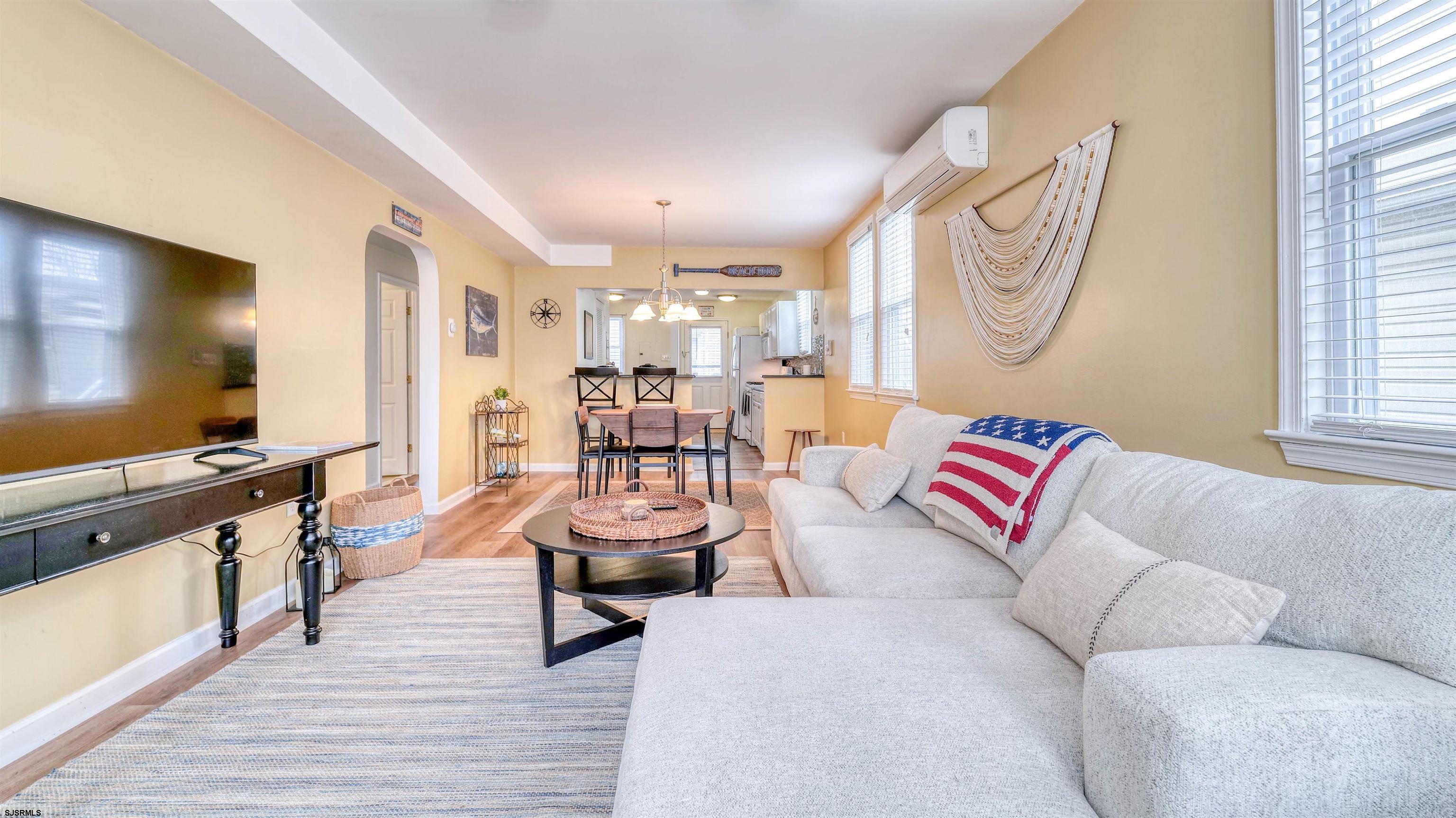 Welcome to 133 Central, a beautifully maintained first-floor duplex located in a quiet North End neighborhood. This 3 bedroom, 1 bathroom home offers a clean, comfortable layout ideal for a full summer season at the shore. The updated kitchen features granite countertops, modern finishes, and plenty of cabinet space, opening seamlessly into a dedicated dining room perfect for hosting family dinners or gathering after a day at the beach. Natural light fills the living spaces, creating a bright and inviting atmosphere throughout. Enjoy mornings and evenings on the charming awning-covered front porch, a perfect shaded retreat to relax and unwind. Situated in a peaceful residential setting while still conveniently close to beaches, boardwalk, and town amenities, this property offers the best of both comfort and location.