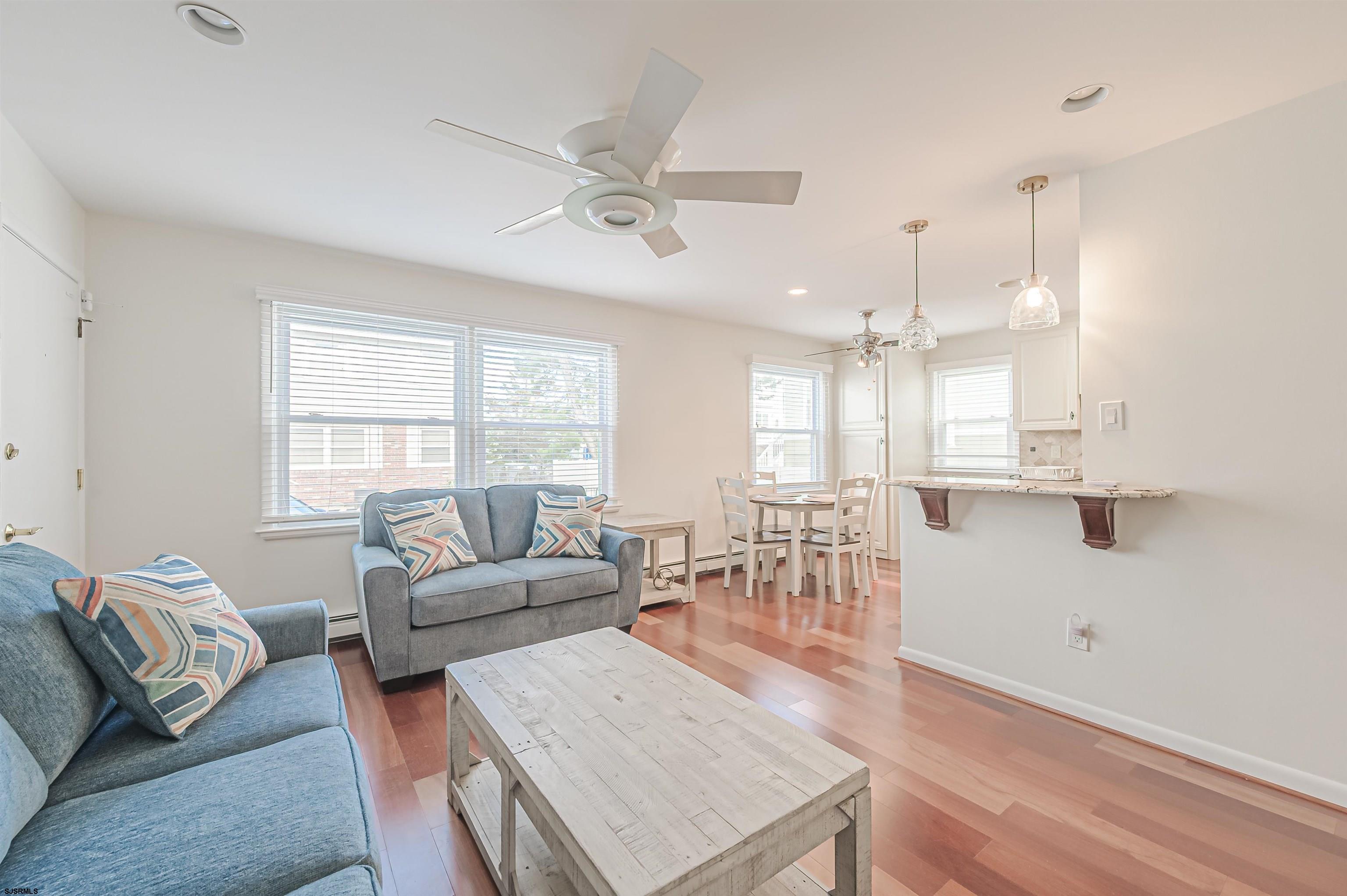ADORABLE FIRST FLOOR CORNER CONDO JUST TWO BLOCKS TO THE BEACH IN THE HEART OF MARGATE. This newly updated two bedroom, one and a half bath unit is the perfect summer rental, offering comfort, convenience, and an unbeatable location. The bright living space flows into a functional kitchen and dining area, with washer and dryer in the unit for added ease. The primary bedroom features a king bed and private half bath, while the second bedroom offers a queen bed and is served by a full hall bath. This first floor corner unit includes a designated parking spot and a storage unit for beach gear. Beach chairs and beach tags are also provided, making your move in seamless. Located just two blocks to the beach and within walking distance to Margate’s best restaurants, boutiques, mini golf, the water park, and local favorites like Lucy the Elephant and the Dairy Bar, everything you need is right at your fingertips. A perfect opportunity to enjoy summer in Margate.