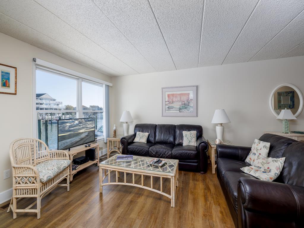 Waterfront 2 BR/2 BA condo with outstanding views of The Cape May Harbor and Marina District. Within close proximity to restaurants and shopping. The first level offers a living room with queen sofa bed, dining area, kitchen and laundry closet with a washer and dryer. A sliding door leads to a waterfront deck. Level two includes a hallway bathroom, bedroom with two single beds, and master bedroom with queen bed and private bathroom. Sleeps 6. Dock. No boat slip. Parking for 1 car under unit. Unmarked parking spaces are for tenant use if available. $120 cleaning fee to be added to all stays under one week. *** TENANTS ARE RESPONSIBLE FOR BRINGING LINENS & BLANKETS AND TOWELS! *** deSatnick Real Estate, LLC 609.884.1300 rentals@deSatnickRealEstate.com www.deSatnickRealEstate.com