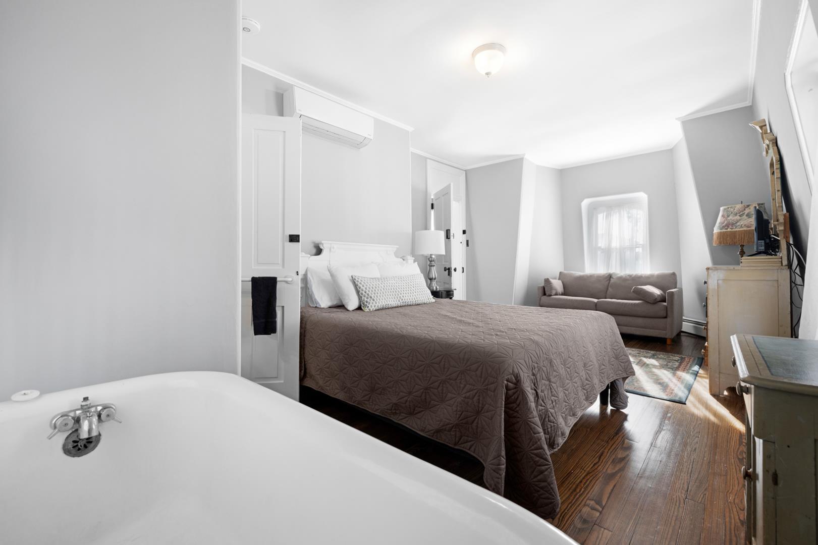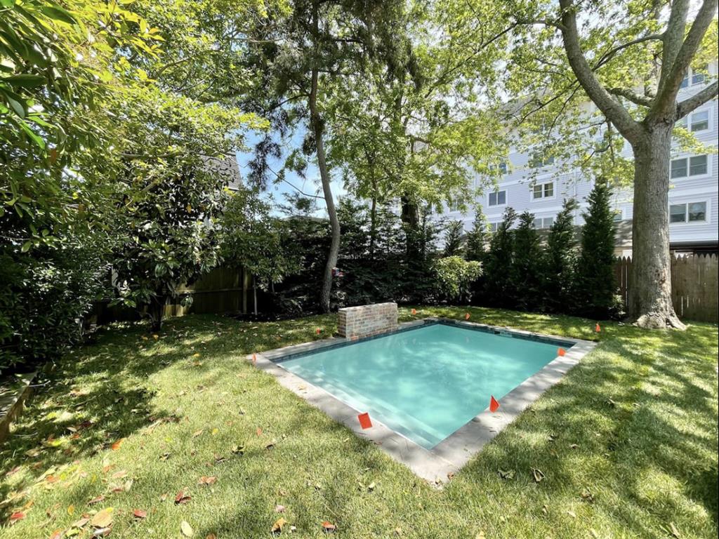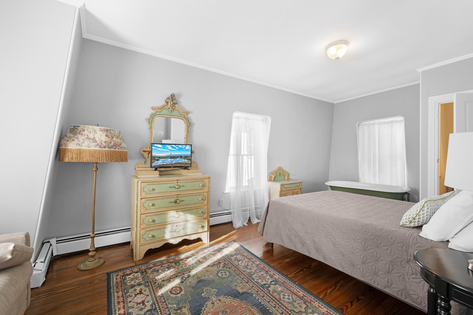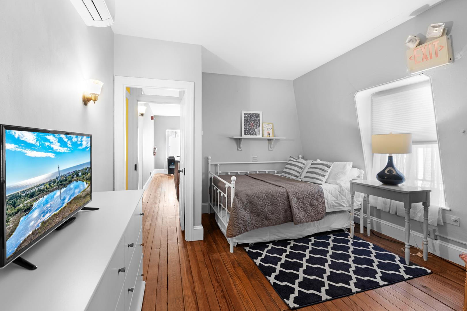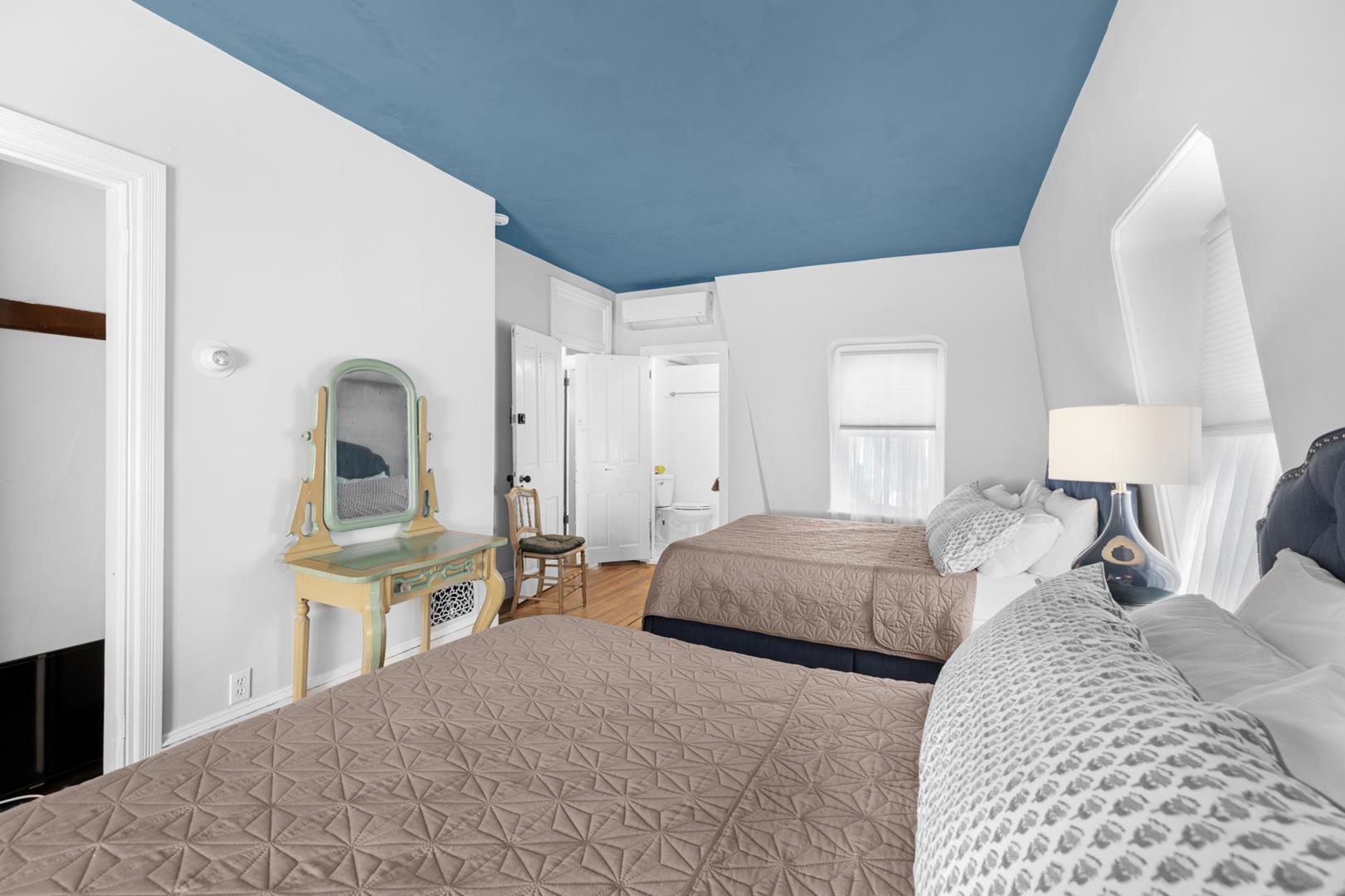 This home features a large living room, a large dining room, a large back parlor, 9 bedrooms, and 8 baths and sleeps 22 with a mixture of double beds, queen, single beds, and one king all richly decorated. Shaded porches offer relaxing spaces for reading, watching the horse-drawn carriages go by, or enjoying the summer breezes. The 2nd-floor porch has a lovely view of the ocean. The location is in the heart of Cape May's historic district, placing you within walking distance to all the great shopping, restaurants, art galleries, miniature golf, arcades, and, of course, our wonderful beaches. There is a large backyard with 2 twelve foot picnic tables for BBQ, Weber gas grill, games, saltwater gunite pool and outside shower. The kitchen features quartz countertops, stainless steel appliances, and custom cabinetry. There is WiFi throughout, a smart TV or cable in every bedroom, and central air. Off-site parking nearby-- permits for 6 cars. The beach is only 3 doors down. This property will provide pillows but NOT blankets. Guests will be responsible for providing their own towels, blankets and sheets.. There is a $800 cleaning fee. deSatnick Real Estate LLC., Office 609-884-1300, rentals@desatnickrealestate.com, www.desatnickrealestate.com