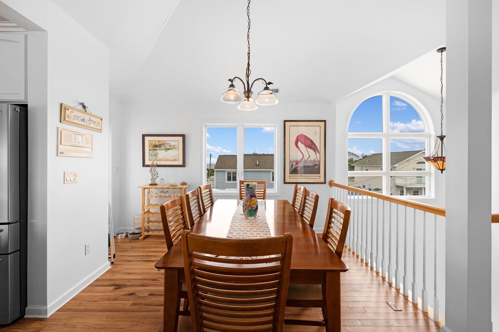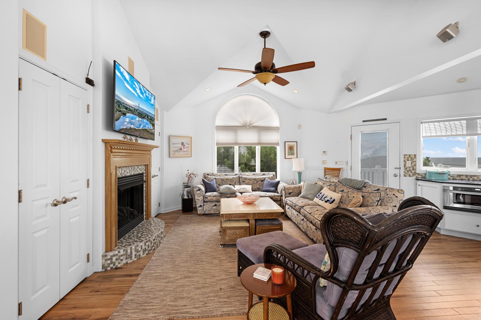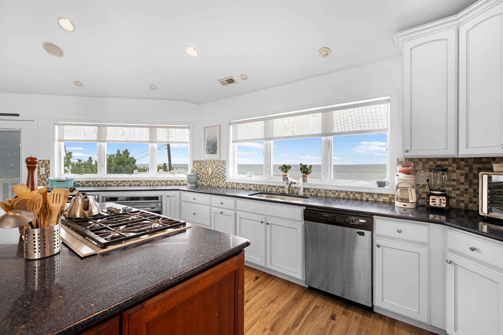 The third floor is home to the open chef's kitchen, dining area, living room, powder room and a primary suite. There is a huge open deck facing the beach with a natural gas grill. There is a separate entertaining area one the ground floor which is ideal for children and young adutls to enjoy, There are two bedrooms and a full bath on the ground floor. The second floor offers a primary suite and two additional bedrooms and a shared hall bath. There is an enclosed hot tub room. All floors have a full bath. There are two enclosed outdoor showers and a ton of beach toys and equipment. The best feature is immediate beach access!