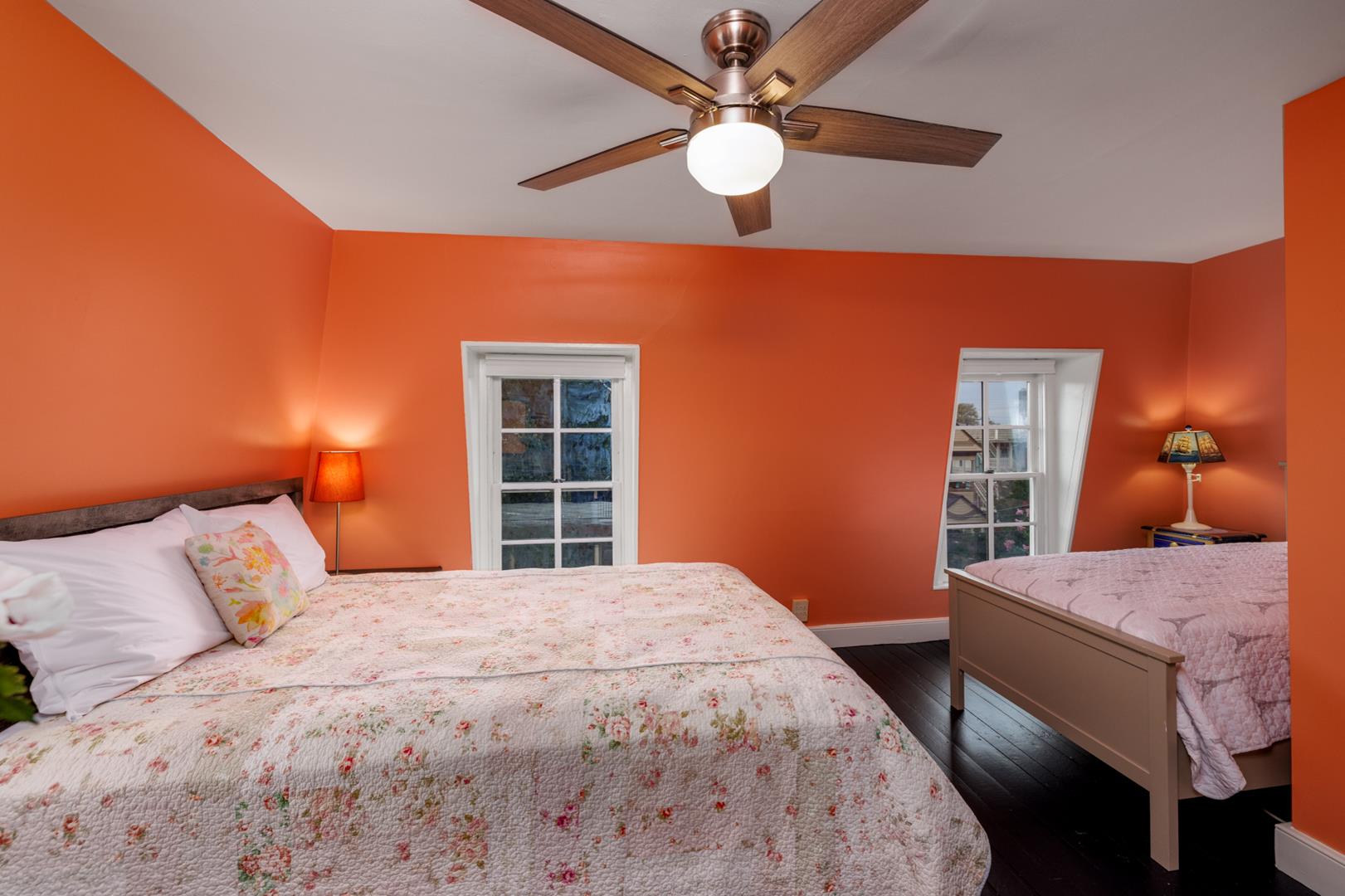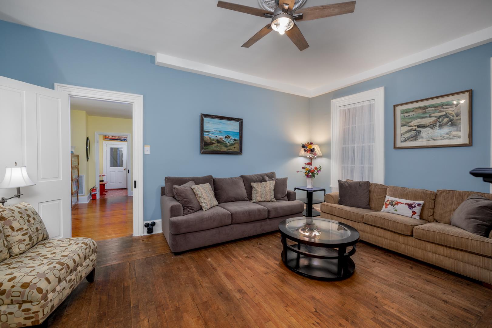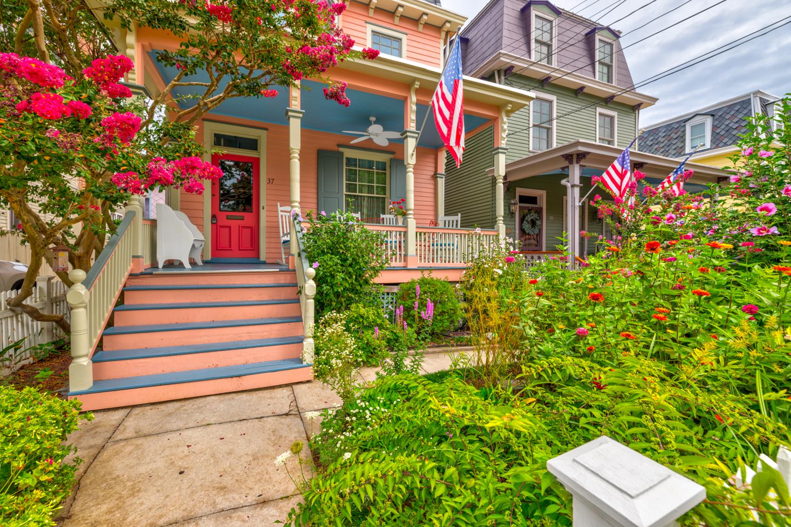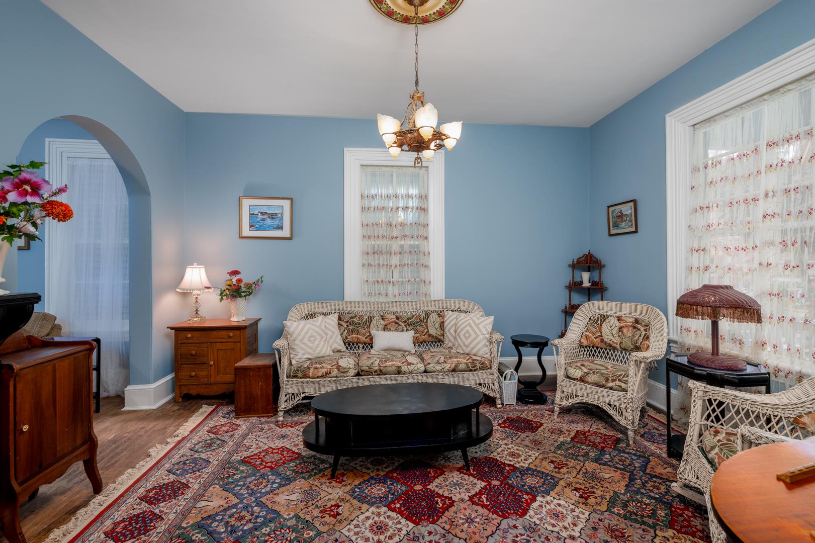 Nestled in the heart of Cape May's historic district, this charming circa-1890 property seamlessly combines timeless character with modern updates. Original wood flooring and trim have been thoughtfully preserved, while modern amenities enhance comfort.Spanning three stories, the spacious home boasts six bedrooms and four bathrooms, comfortably accommodating up to 17 guests. The first floor features a traditional front porch perfect for soaking in the town's charm, two cozy sitting rooms, and a kitchen.On the second floor, a sunroom overlooks picturesque Jackson Street, along with four bedrooms—two offering ensuite bathrooms. A highlight is the third bedroom’s original clawfoot tub, adding a touch of vintage elegance. The third floor includes two additional bedrooms, a shared Jack-and-Jill bathroom, and scenic views of the city rooftops.Outdoors, a private backyard patio provides a serene retreat. During the summer, an extra bathroom and shower on the first floor add convenience. Two offsite parking permits for nearby Bank Street are also included. Located steps from the Washington Street Mall’s shops and restaurants and within easy reach of Cape May’s award-winning beaches, this home offers the perfect blend of historic charm and modern comfort. Please note a $400 cleaning fee applies to all rentals.