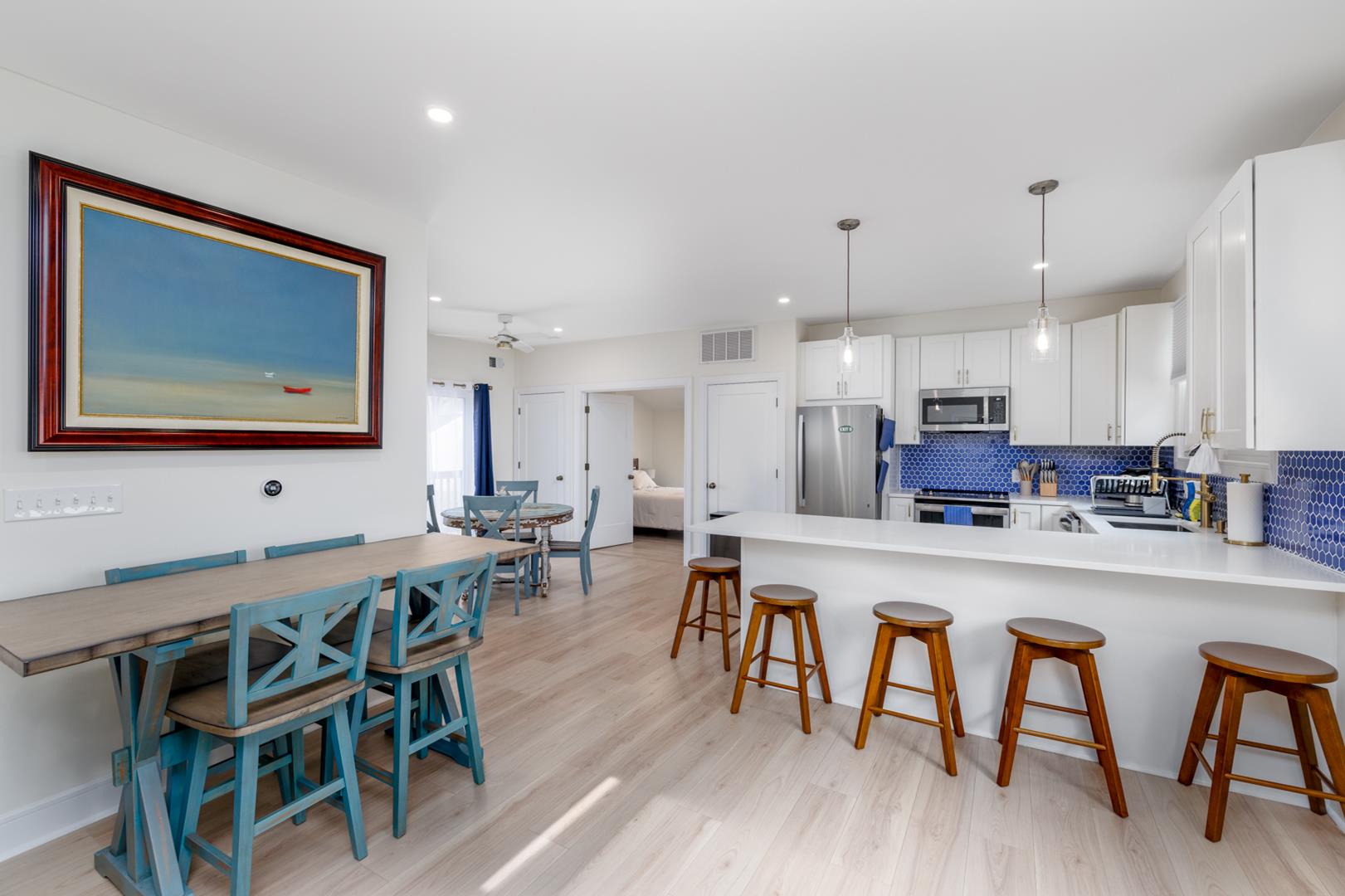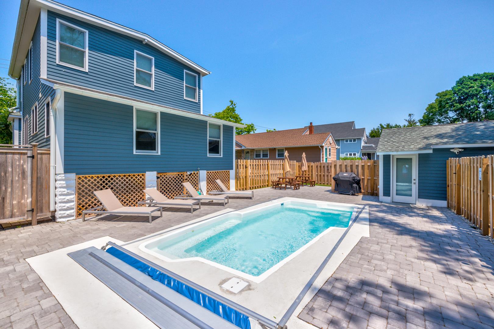 Beautifully renovated 6-bed/4.5bath home with inground pool! Bright & airy, 2 separate hangout spaces, front porch, rear patio, outdoor shower, and 4 off-street parking spots. Only a 10 minute walk to the Madison Ave. beach and the shopping area, or a short bike ride or drive. Bring your pooch because it's dog-friendly, too, with a fully fenced rear yard! The Sunday-to-Sunday booking allows you to avoid the Saturday arrival traffic. *Bonus- 4 offstreet parking spaces provided on property* A cleaning fee of $285 will be charged for stays less than a week, and there is a $150 pet fee for the 1st dog, $100 for the 2nd. Also, ask about the option to have the pool heated for a $200 fee (2026- pool will be open by Memorial Day Weekend).