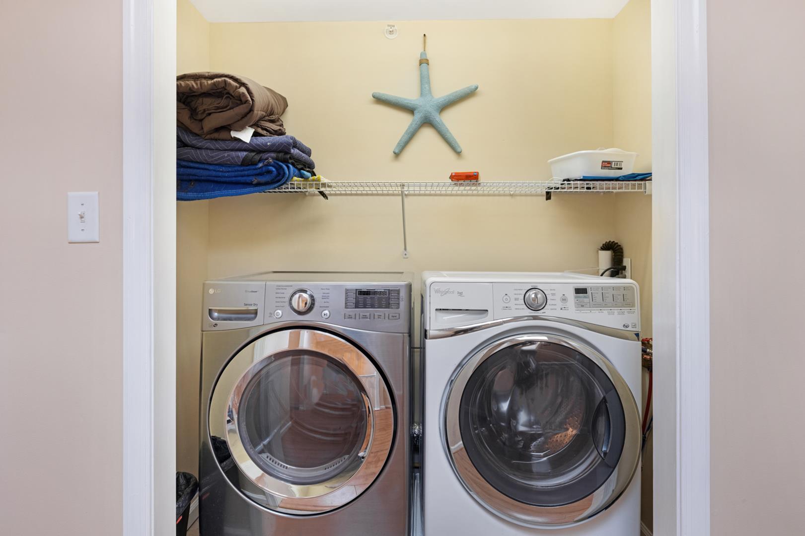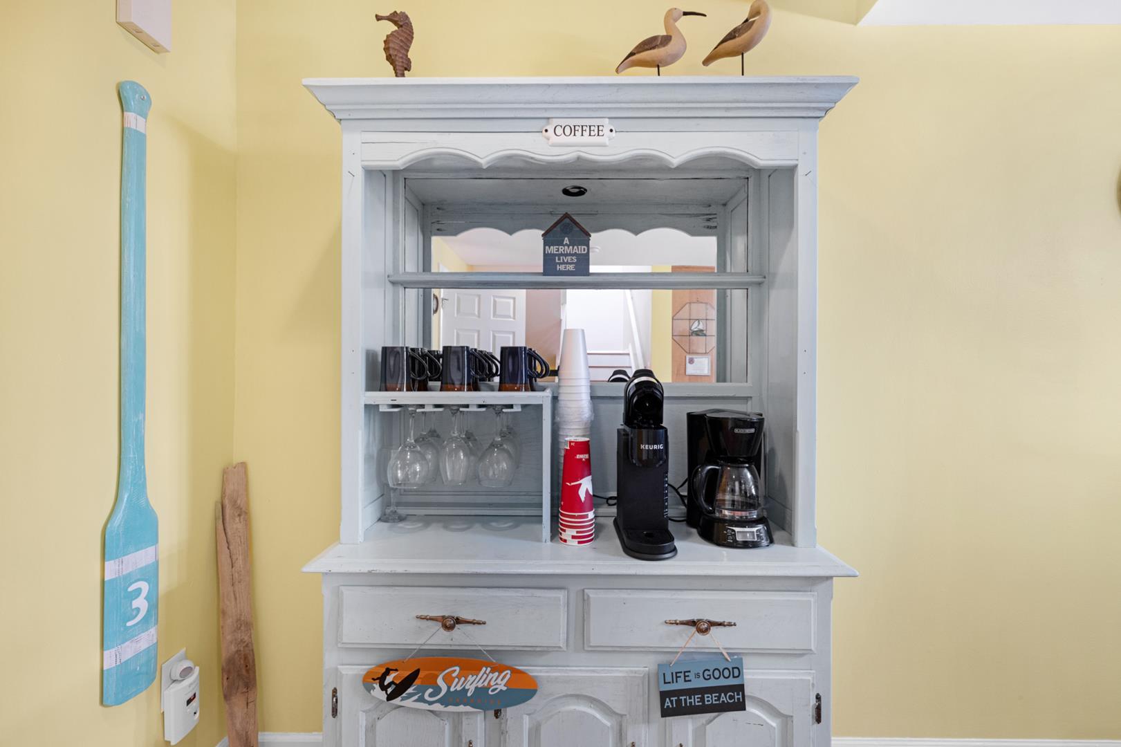 Additional amenities include free WiFi, a Keurig coffee maker, washer and dryer, and storage area for your beach gear. The property is cleaned with disinfectant, and safety features such as smoke detectors, carbon monoxide detectors, and fire extinguishers are in place for your peace of mind.