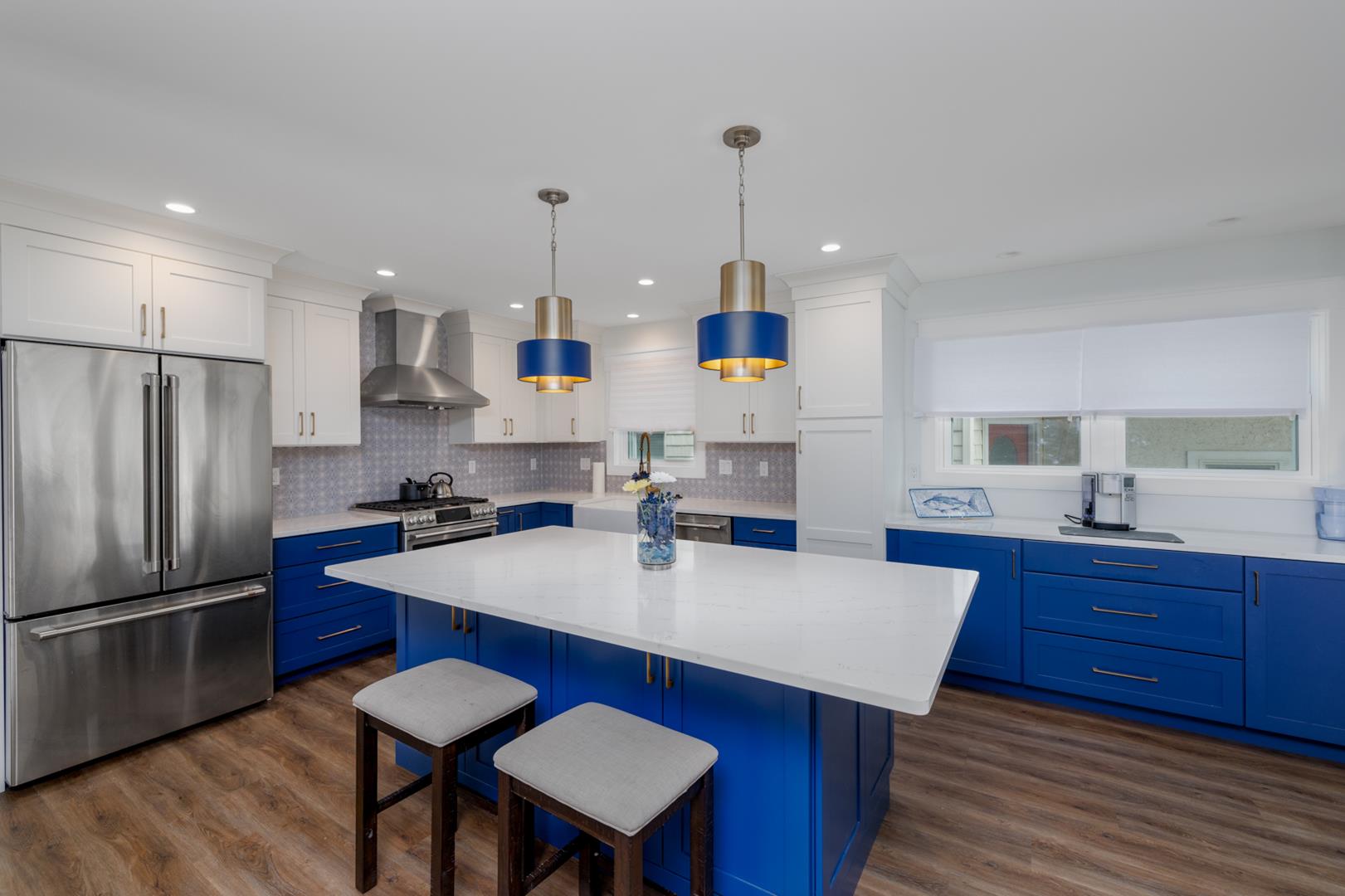Enjoy your morning coffee on one of the two decks or the open/covered porch, or fire up the BBQ gas grill for a cookout in the private fenced yard. The wet bar is perfect for mixing up cocktails, and the gourmet kitchen is a chef's delight.