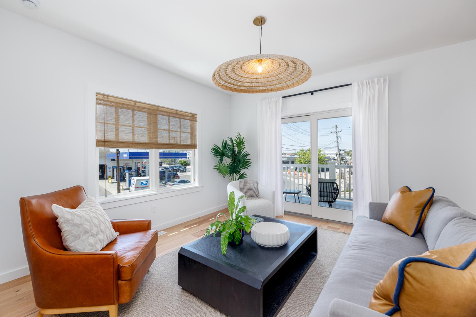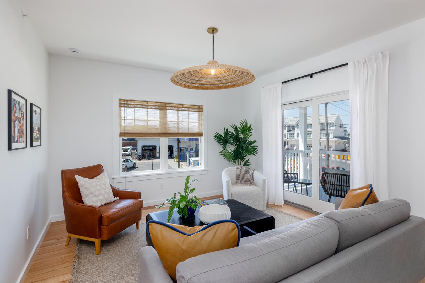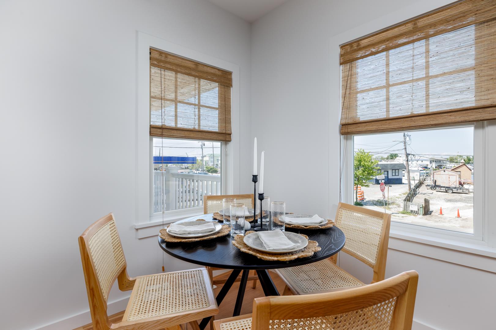 Welcome to your ideal getaway in Cape May! Just a quick 5 minute drive to downtown Cape May, this newly constructed condo unit features 2 bedrooms, 2 full bathrooms, and breathtaking water view. As you step inside, you'll be greeted by modern amenities and a pristine living space. The fully equipped kitchen features top-of-the-line appliances including a dishwasher, microwave, toaster, and Keurig coffee maker. Enjoy your meals at the dining table or kitchen island with seating for 4, all provided with silverware, dinnerware, and cooking utensils. Relax in the spacious living area with central AC, ceiling fans, and gas heat for your comfort. The property also includes a washer and dryer, ensuring convenience during your stay. Unwind in one of the two luxurious King bedrooms, complete with plush pillows, blankets, and linens provided. The two full bathrooms offer all the necessary amenities, including bath towels.