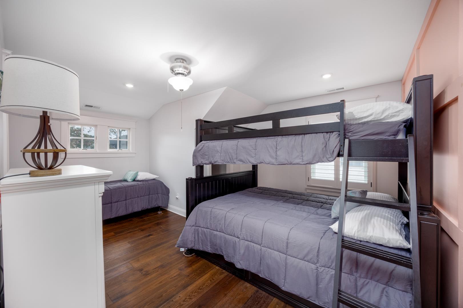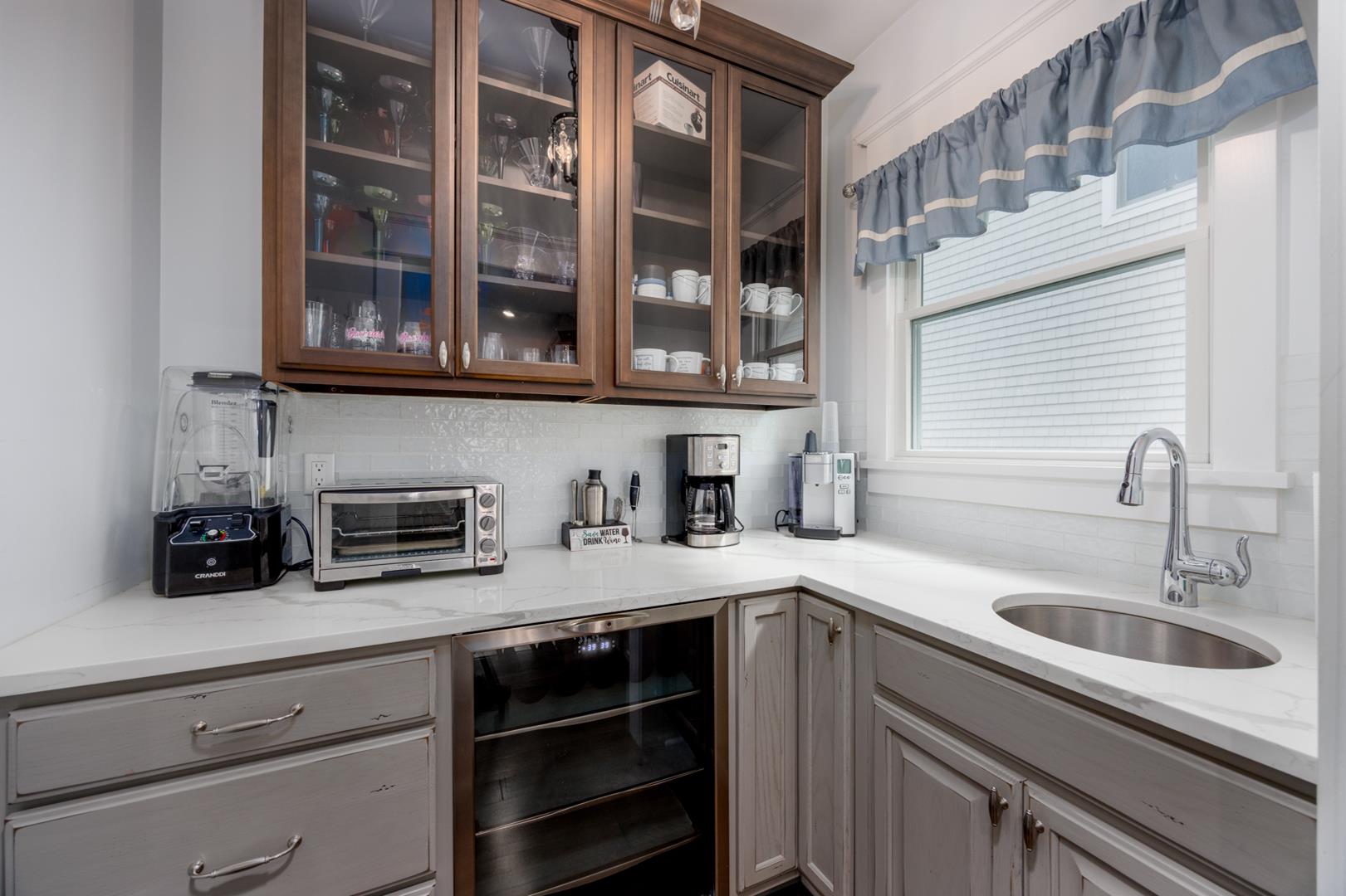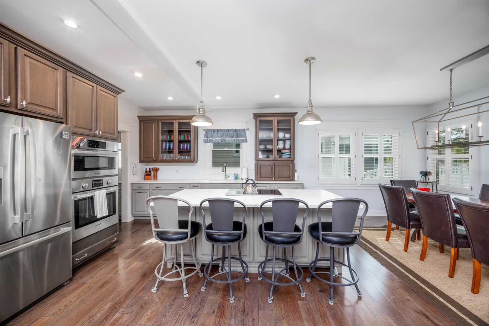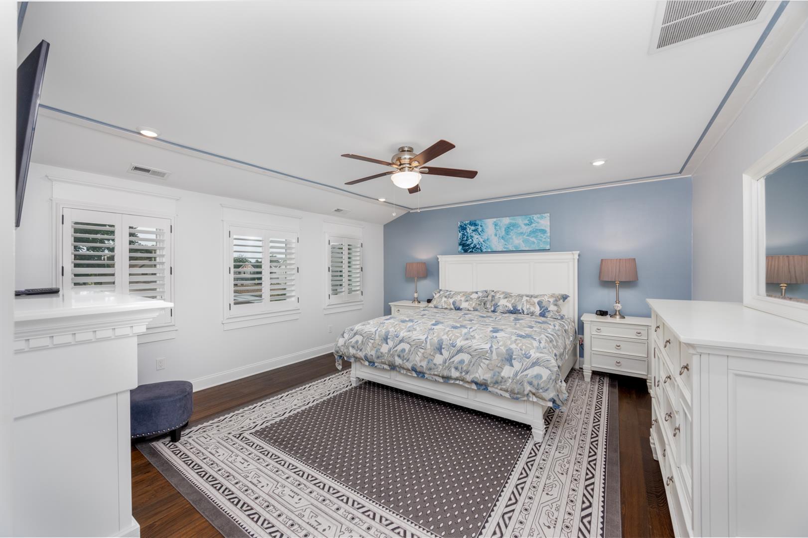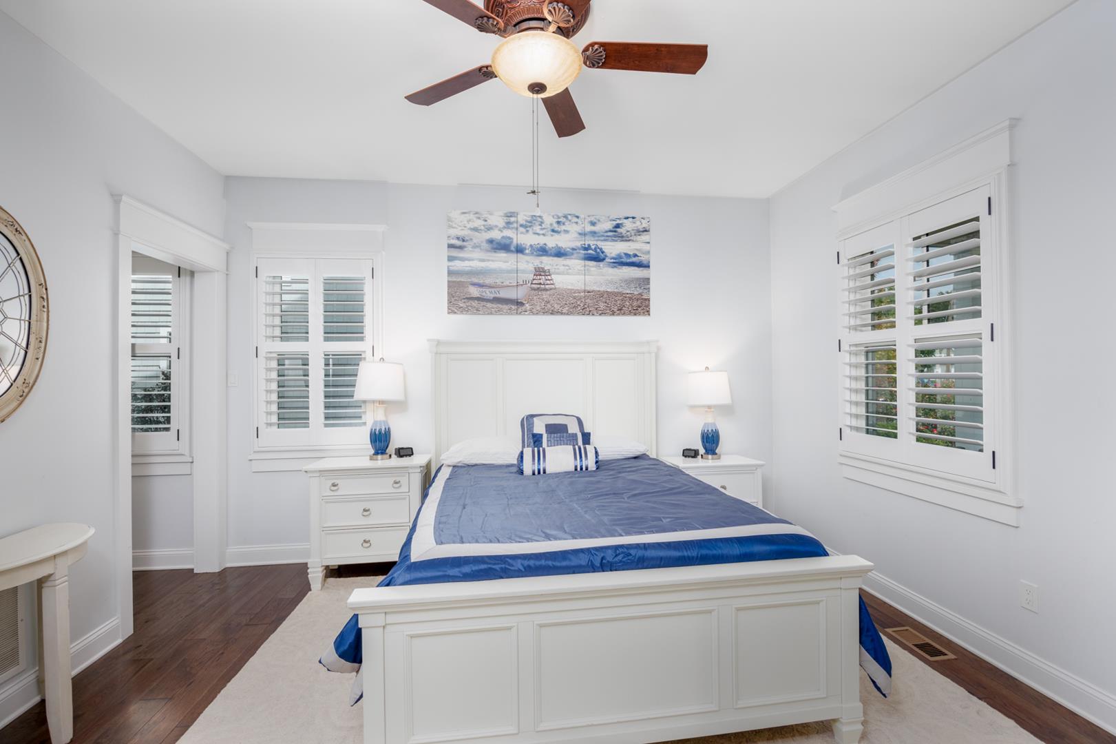 Welcome to Stirling House! A 5-bedroom, 4-bathroom house sure to accommodate your vacation needs! Situated on a quiet street, but still centrally located between many amenities, this property is perfect for any group. The first floor has one bedroom and one master suite, accompanied by a large open floor plan kitchen and living area. The kitchen comes equipped with anything you may need to make this property feel like home and comes with a butler's pantry. There is ample indoor and outdoor seating, there is plenty of room to entertain a crowd. Upstairs you will find 3 more bedrooms, including a second master suite, and two bedrooms connected with a jack-and-jill bathroom. The backyard is oasis includes a firepit, grill, and outdoor shower. Guests will also have access to the garage where they can utilize the beach equipment, outdoor games and bicycles with helmets. Guests will also be able to utilize a storage box on Windsor Beach for their convenience if they choose to leave beach equipment there for the week. Linens and towels are only provided at this property for week long rentals in the summer. They are NOT provided for less-than-weekly rentals. Blankets and pillows are provided on ALL rentals. Off-street parking for four vehicles is also available. Rental requires a $450 cleaning fee on all stays.
