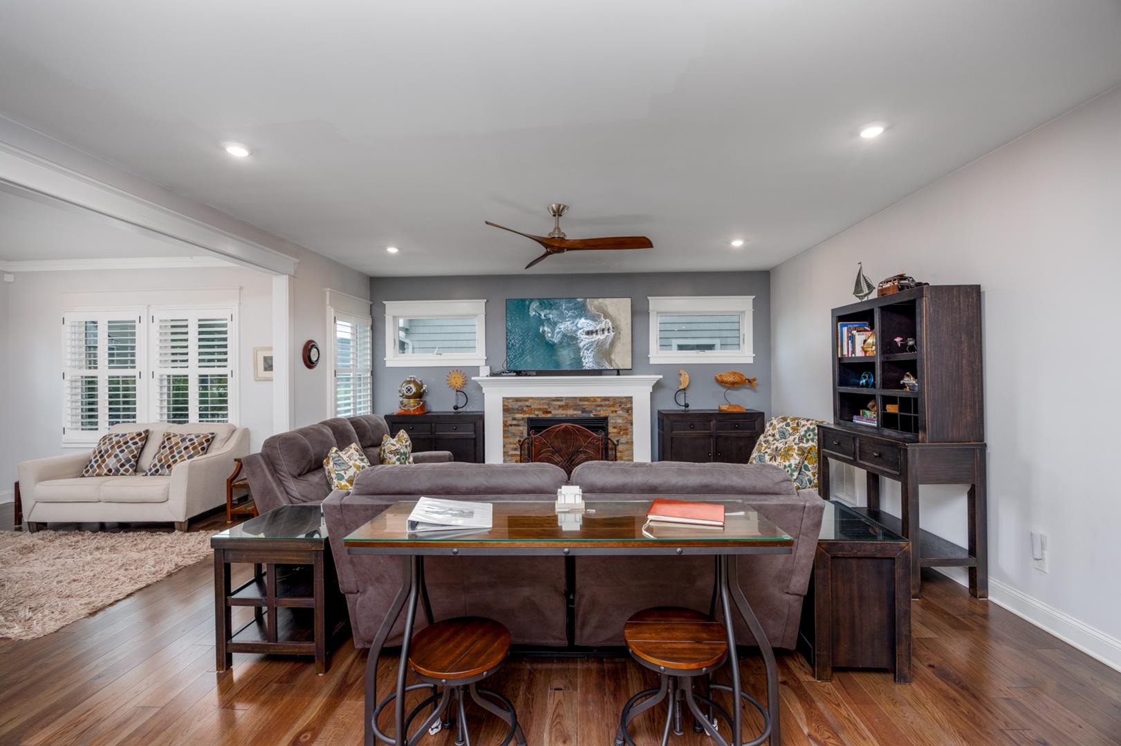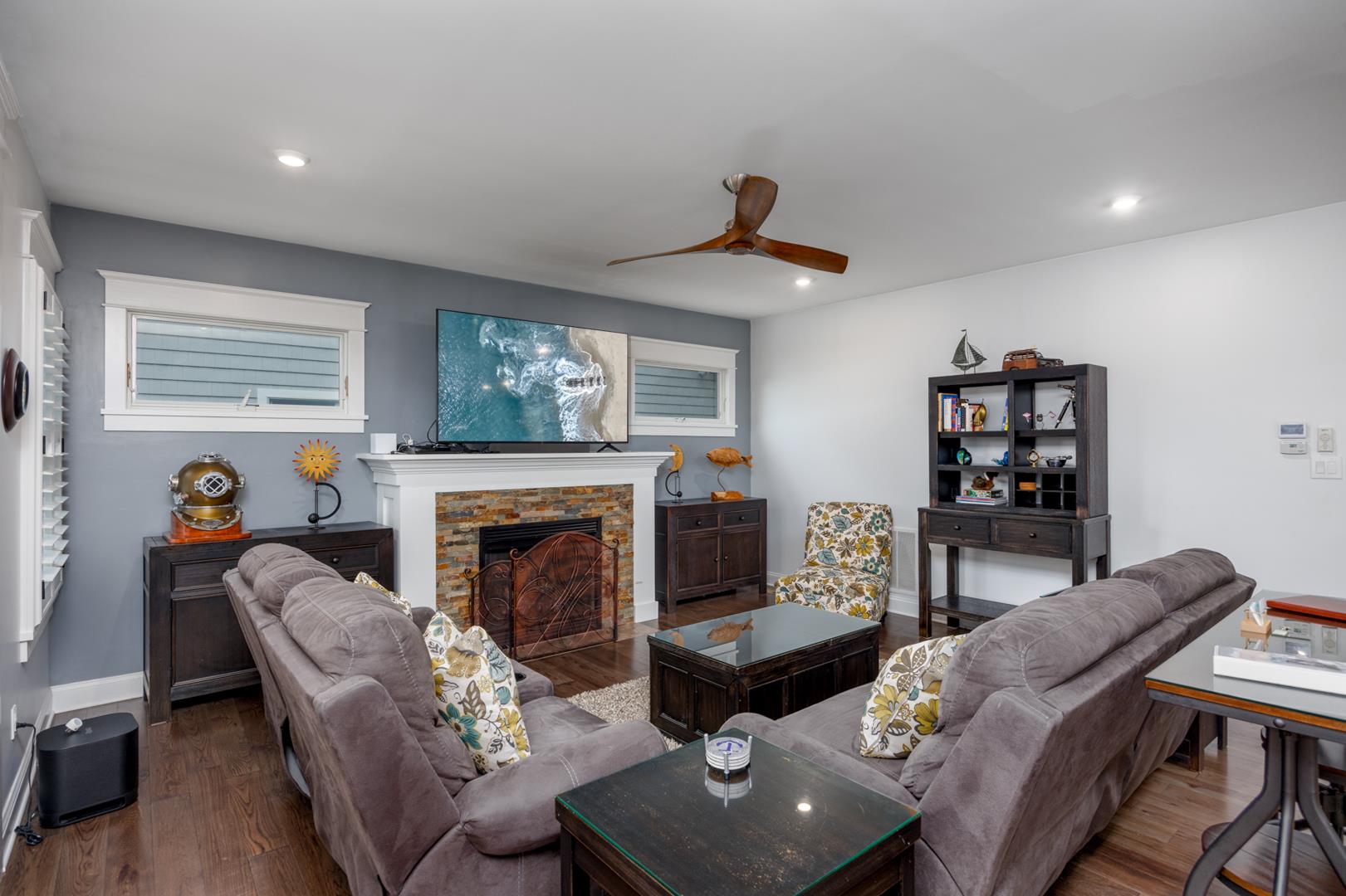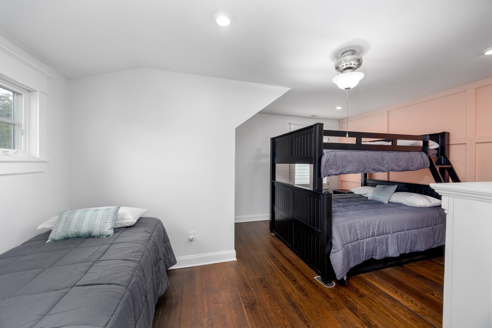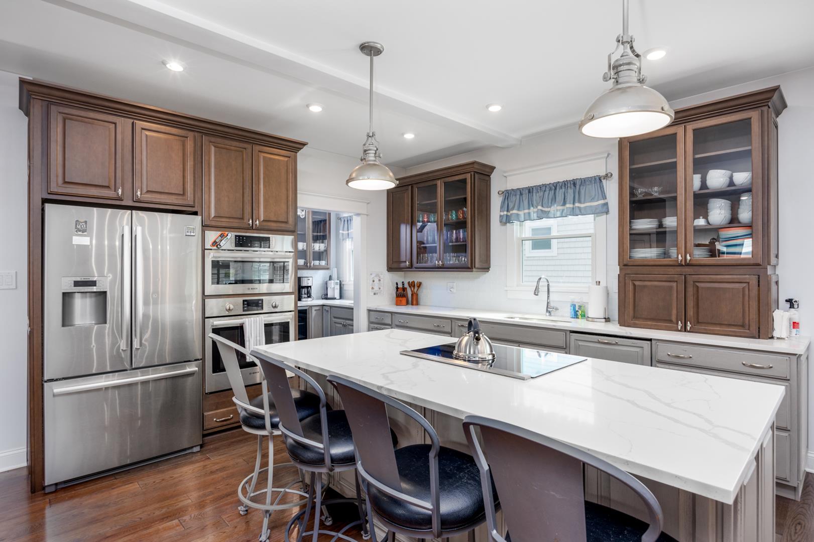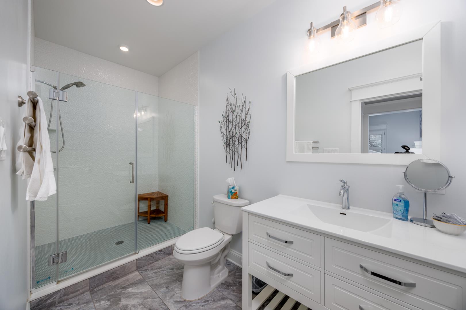 Welcome to Stirling House! A 5-bedroom, 4-bathroom house sure to accommodate your vacation needs! Situated on a quiet street, but still centrally located between many amenities, this property is perfect for any group. The first floor has one bedroom and one master suite, accompanied by a large open floor plan kitchen and living area. The kitchen comes equipped with anything you may need to make this property feel like home and comes with a butler's pantry. There is ample indoor and outdoor seating, there is plenty of room to entertain a crowd. Upstairs you will find 3 more bedrooms, including a second master suite, and two bedrooms connected with a jack-and-jill bathroom. The backyard is oasis includes a firepit, grill, and outdoor shower. Guests will also have access to the garage where they can utilize the beach equipment, outdoor games and bicycles with helmets. Guests will also be able to utilize a storage box on Windsor Beach for their convenience if they choose to leave beach equipment there for the week. Linens and towels are only provided at this property for week long rentals in the summer. They are NOT provided for less-than-weekly rentals. Blankets and pillows are provided on ALL rentals. Off-street parking for four vehicles is also available. Rental requires a $450 cleaning fee on all stays.
