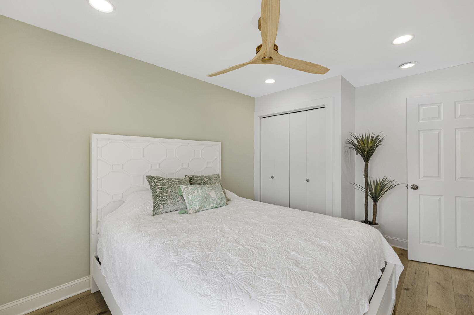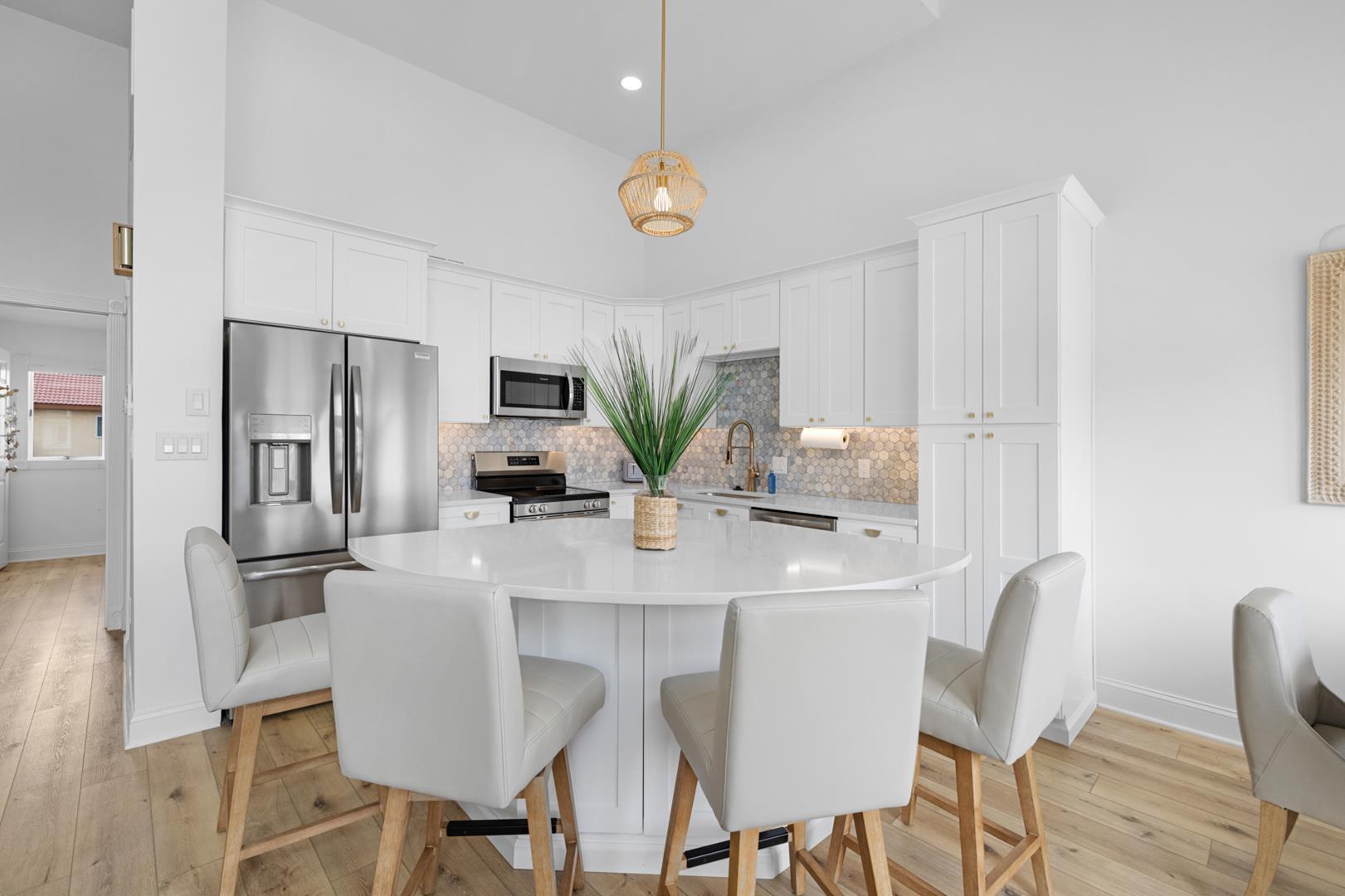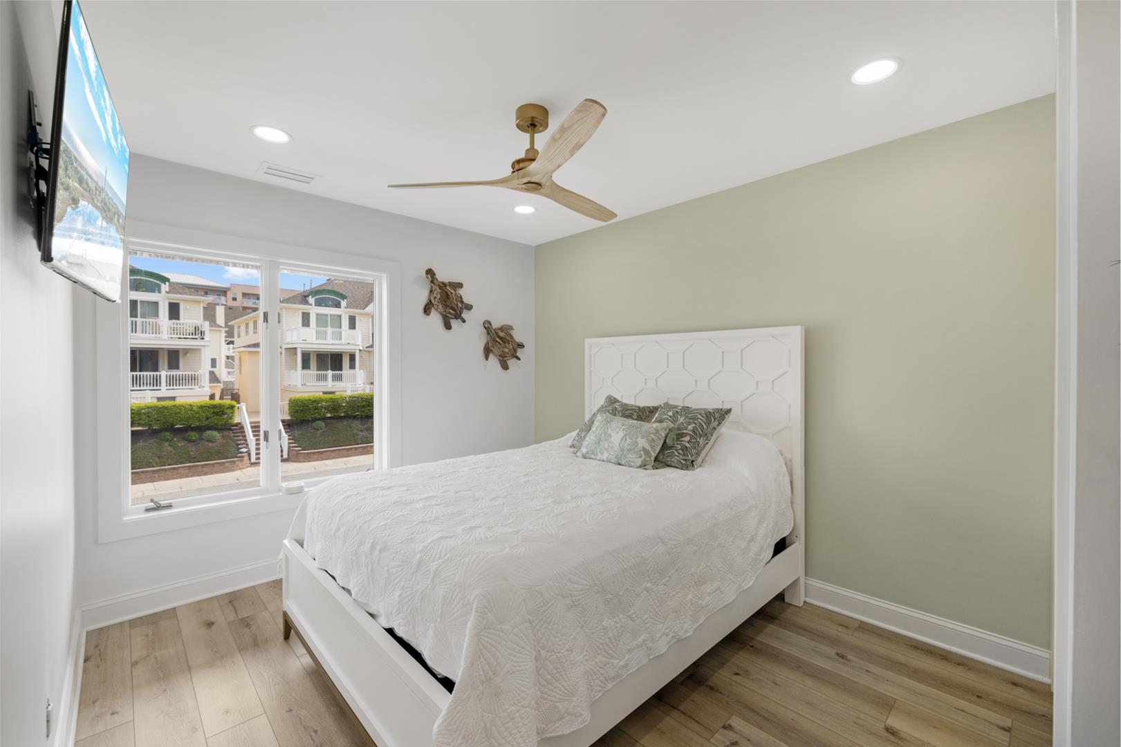 Inside, you'll find a fully equipped kitchen with modern appliances including a dishwasher, microwave, coffee maker, and toaster. The central AC and ceiling fans will keep you cool on hot summer days, while the gas heat will keep you warm on cooler evenings. Other amenities include a washer, dryer, vacuum cleaner, Smart TVs, and free WiFi.