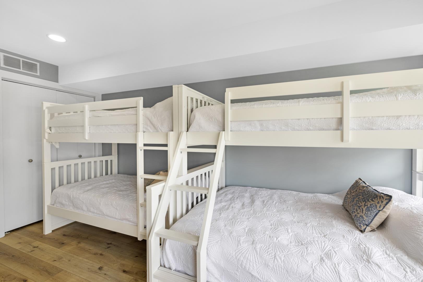 With 3 bedrooms and 2.5 bathrooms, this spacious property can sleep a total of 9 people, making it perfect for families or groups of friends looking to enjoy a beach getaway. The bedrooms feature a King bed, Queen bed, Double bed, 3 Single beds, and a Bunk bed, ensuring that everyone has a cozy place to rest after a day of fun in the sun.