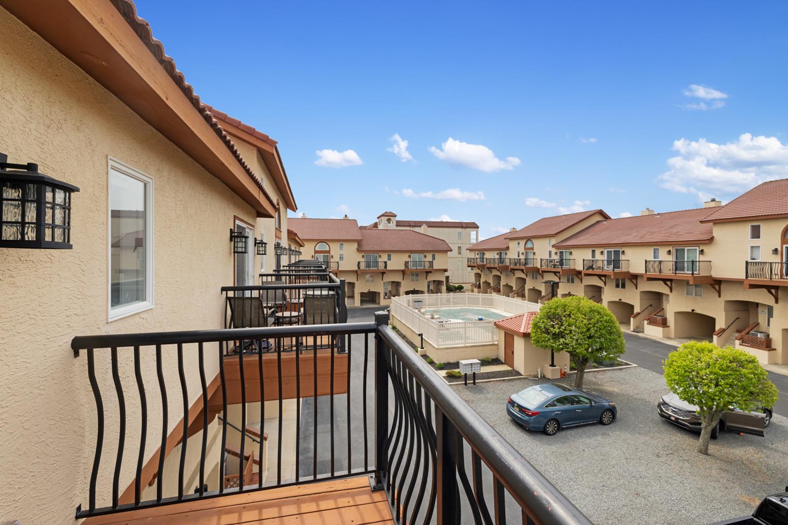 Outside, you can relax on the deck or balcony, take a dip in the community pool or outdoor pool, or enjoy a meal al fresco with the deck furniture provided..