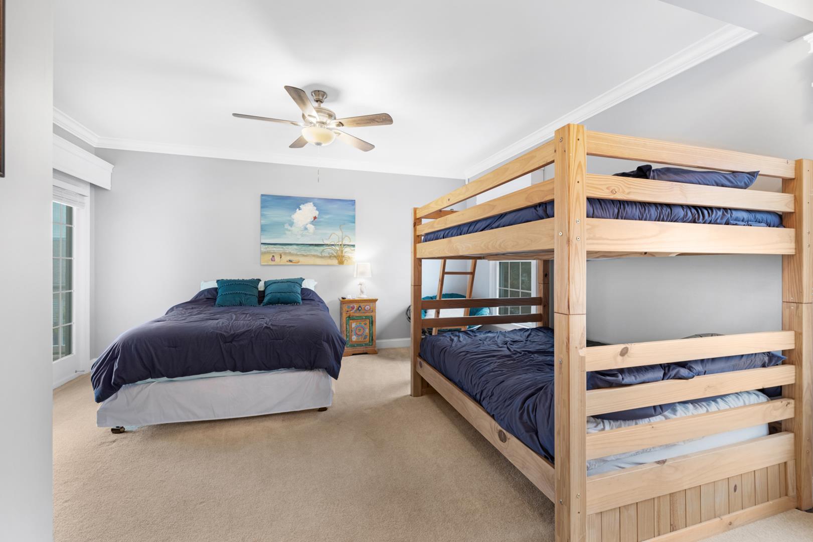 Featuring 4 spacious bedrooms and 3 full bathrooms, this home offers ample space and privacy for everyone. The sleeping arrangements include 1 King Bed, 1 Queen Bed, 2 Double Beds, and 1 Full sized Bunk, ensuring a restful night's sleep for all.