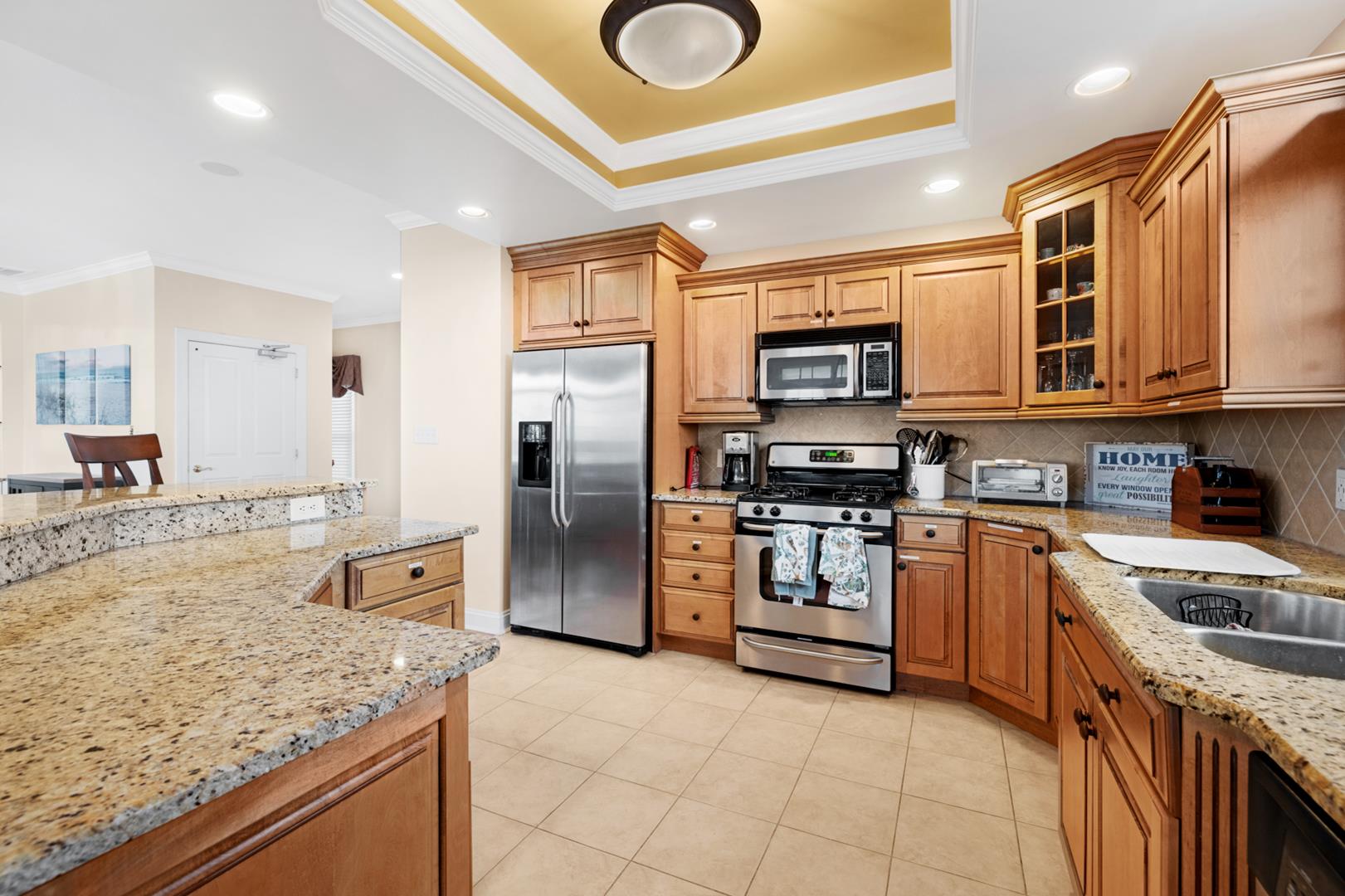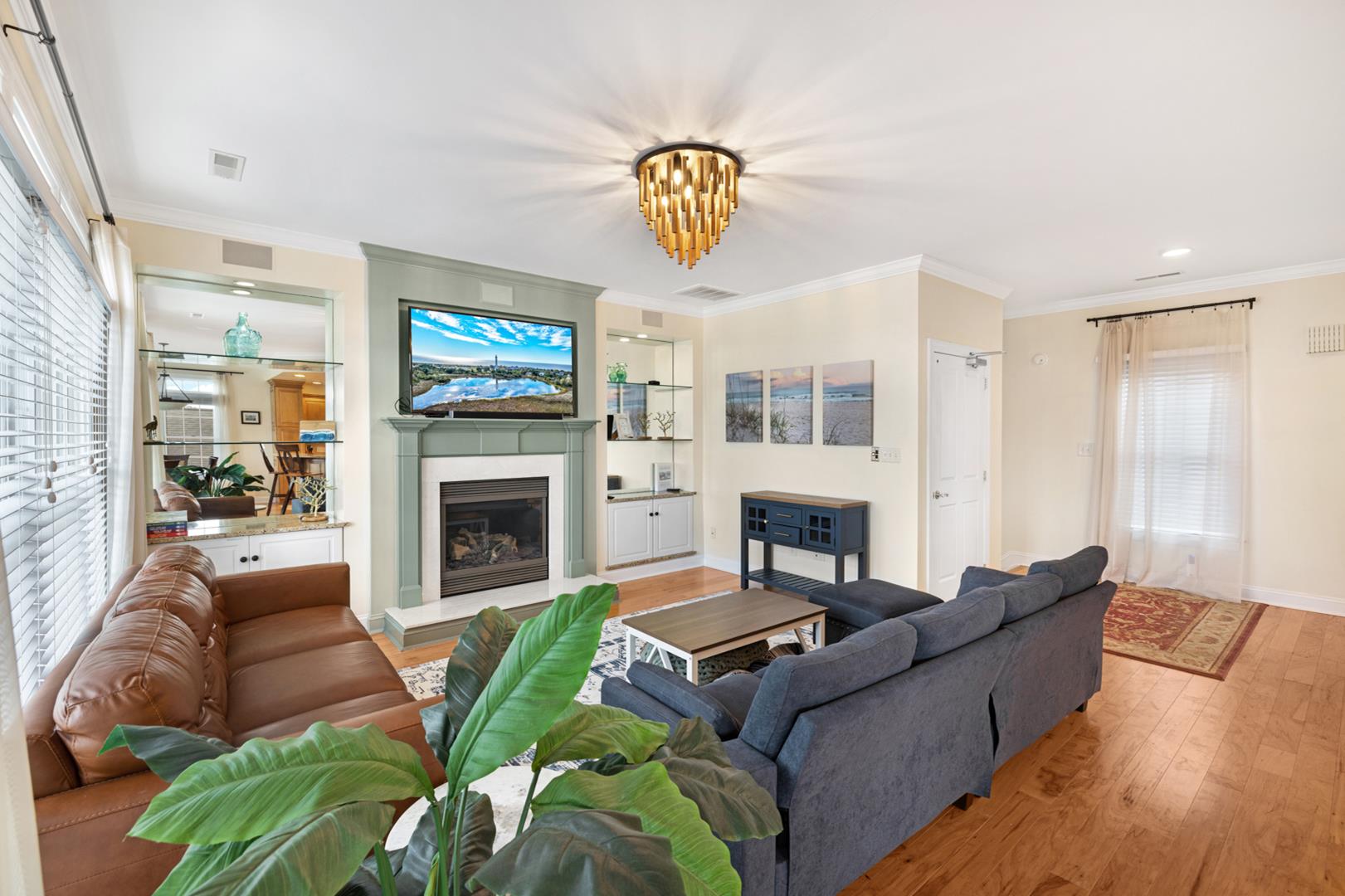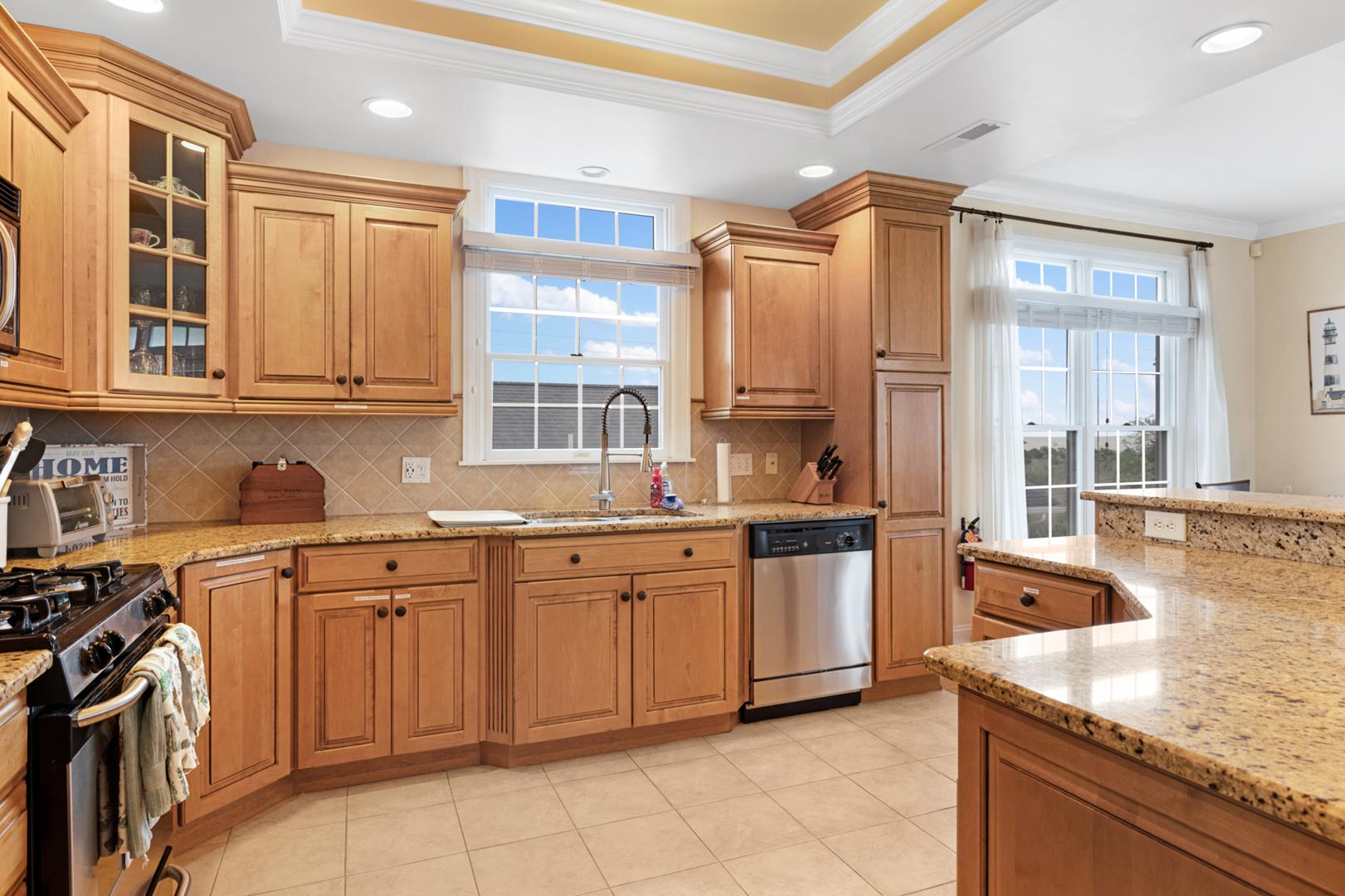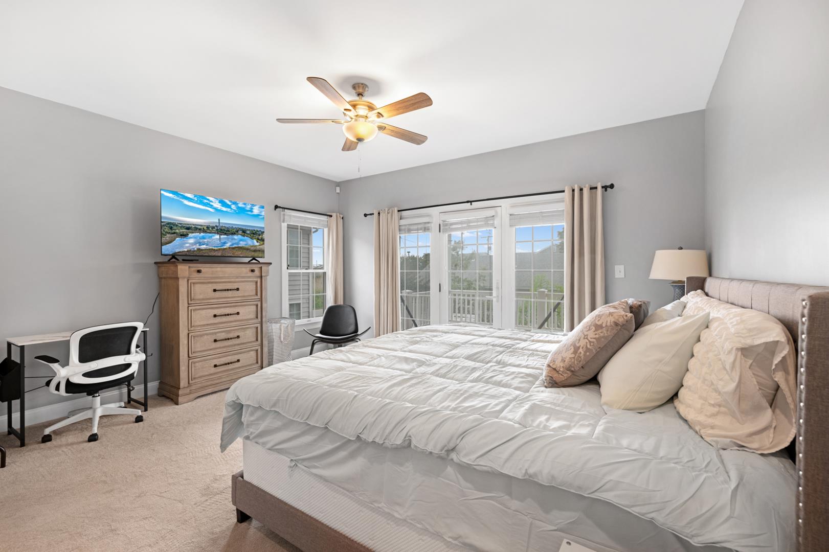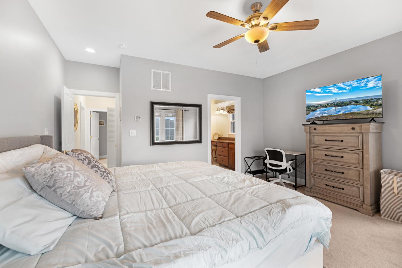 The property is equipped with all the amenities you could need for a comfortable stay, including a fully stocked kitchen with modern appliances such as a dishwasher, microwave, coffee maker, and toaster oven. Stay cool with central AC and ceiling fans, or cozy up by the gas log fireplace on cooler evenings.