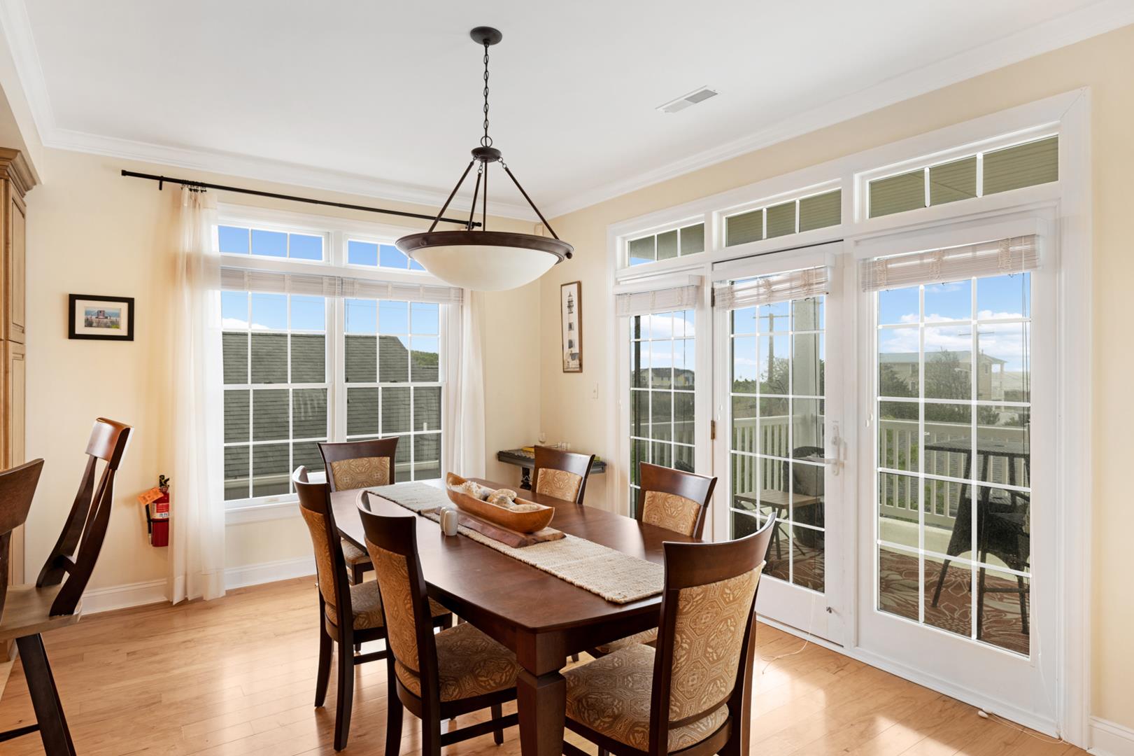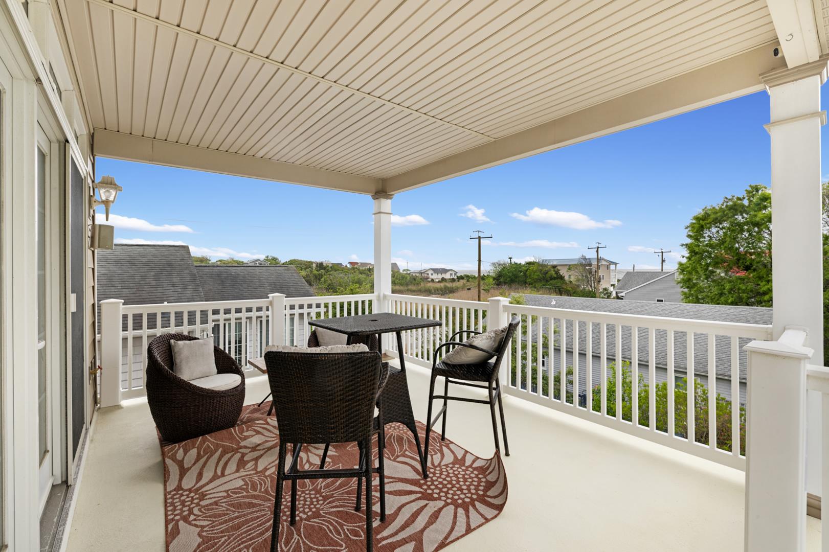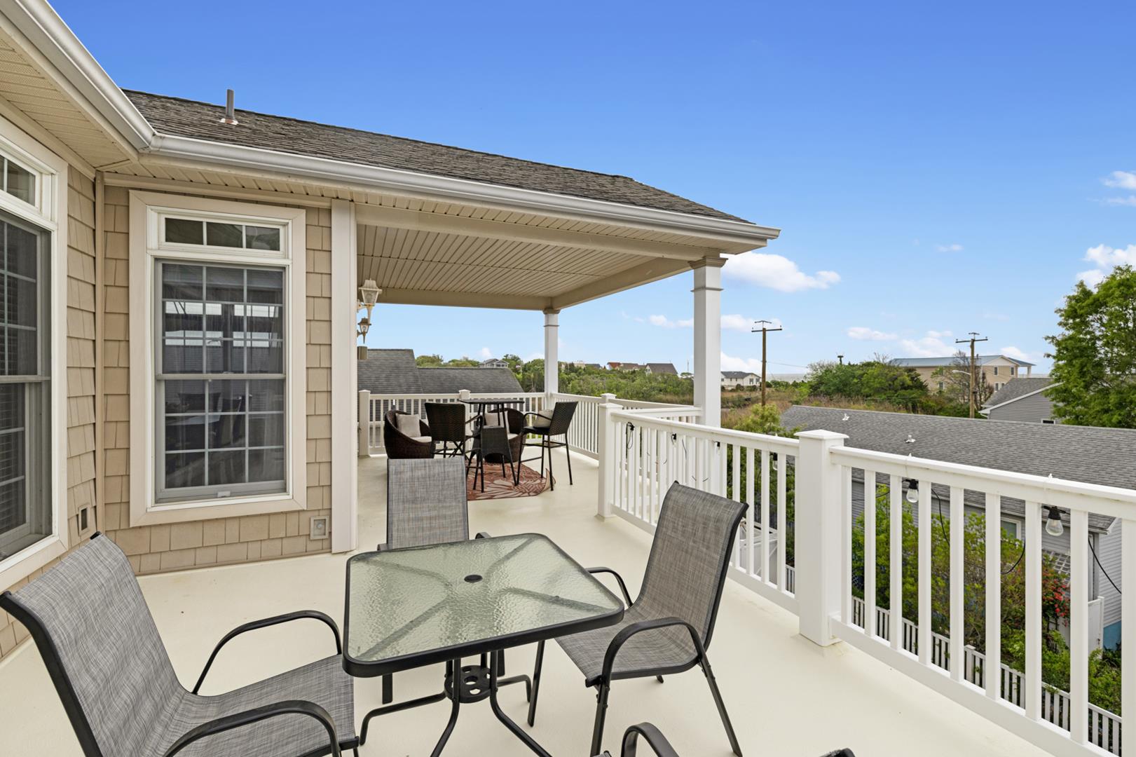 Enjoy the outdoors on the deck or covered porch, complete with deck furniture for al fresco dining. The fenced yard provides a safe space for pets to roam, and beach equipment is available for your convenience. Owner also has a kayak and stand up paddle board for the tenant's use!