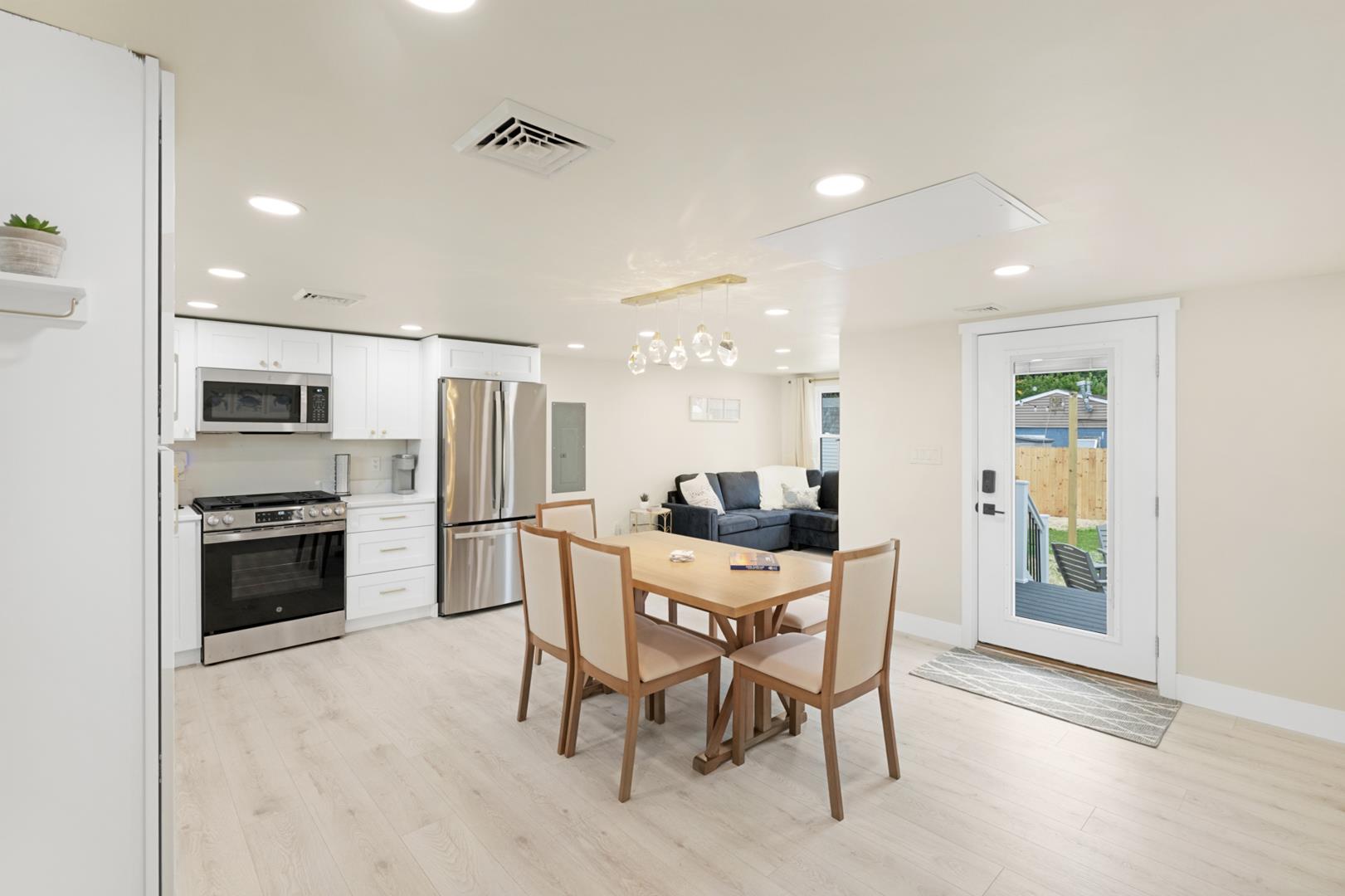 Fully renovated, pet friendly, linens provided and close to the bay! Welcome to this 2 bedroom, 2 full bathroom property that sleeps 6 people and up to 2 of your furry friends (30lb max weight limit each)! This home underwent a full renovation and the design features are both tasteful and practical. Upon entering you will see the brand new kitchen featuring an eat-in dining table. Following the open floor plan to the living room with a full sleeper sofa available. Down the hallway, you will find a full bathroom with a tub and a stackable washer/dryer for guests to use. The first bedroom features a pyramid bunk bed with a queen bed on the bottom and a twin XL bed on top. The master bedroom has a king bed and a full ensuite bathroom with a walk-in closet. Out back, there is a deck with a seating area around the fire pit. String lights provide a relaxing retreat both day and night! Come and check out this cozy home for your summer vacation! Linens and bath towels are provided, no beach towels. There is a $150 cleaning fee on all stays.