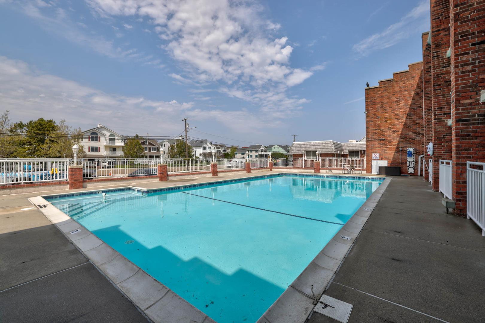 This newly updated one-bedroom Cape Roc Condo sleeps 6 and is located only a one block from the beach. The unit is on the 1st floor near the heated pool and kiddy pool.There is a fully stocked kitchen, dining area with seating for 6, central air conditioning, WIFI, 2 flat screen TVs, and a DVD player. Sundeck with patio table/chairs, lounges and gas grills. Parking, bike racks and coin-op laundry on premises. Tenant responsible to bring own linens. There is a $75 cleaning fee. This season pillows, blankets and comforters are provided. Call or email inquiries to DeSatnick Real Estate or reserve your week 609-884-1300 info@desatnickrealestate.com