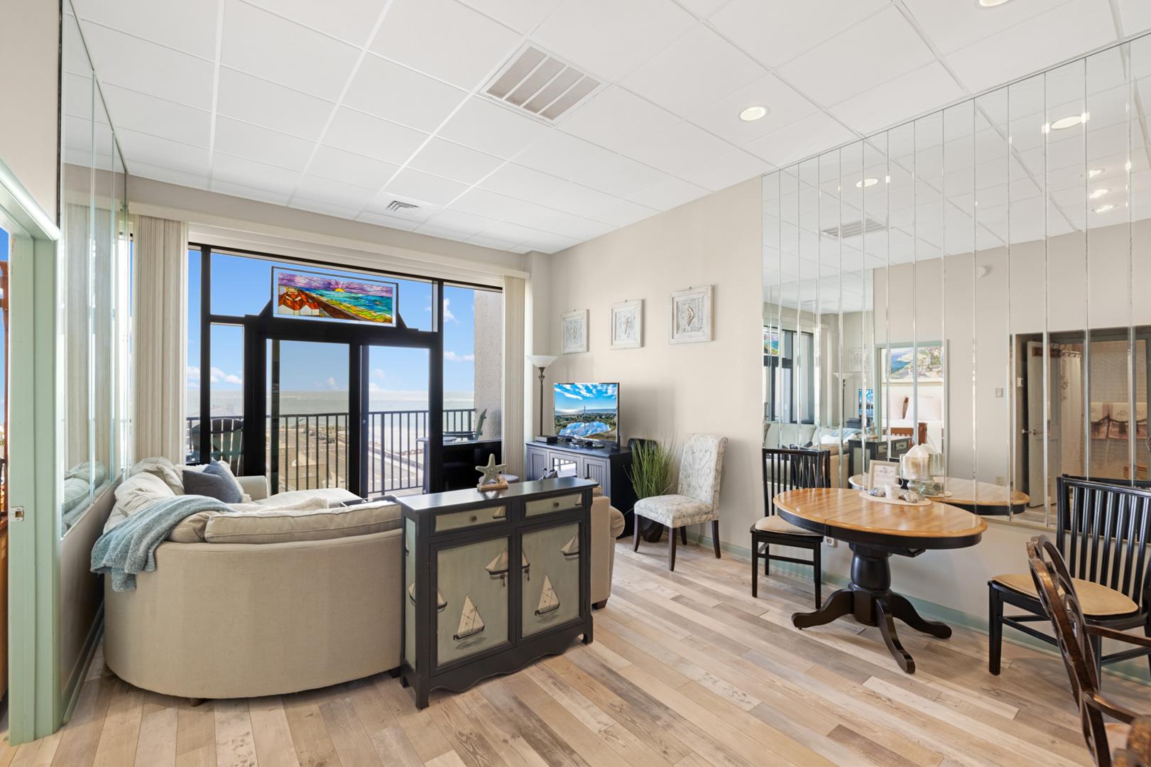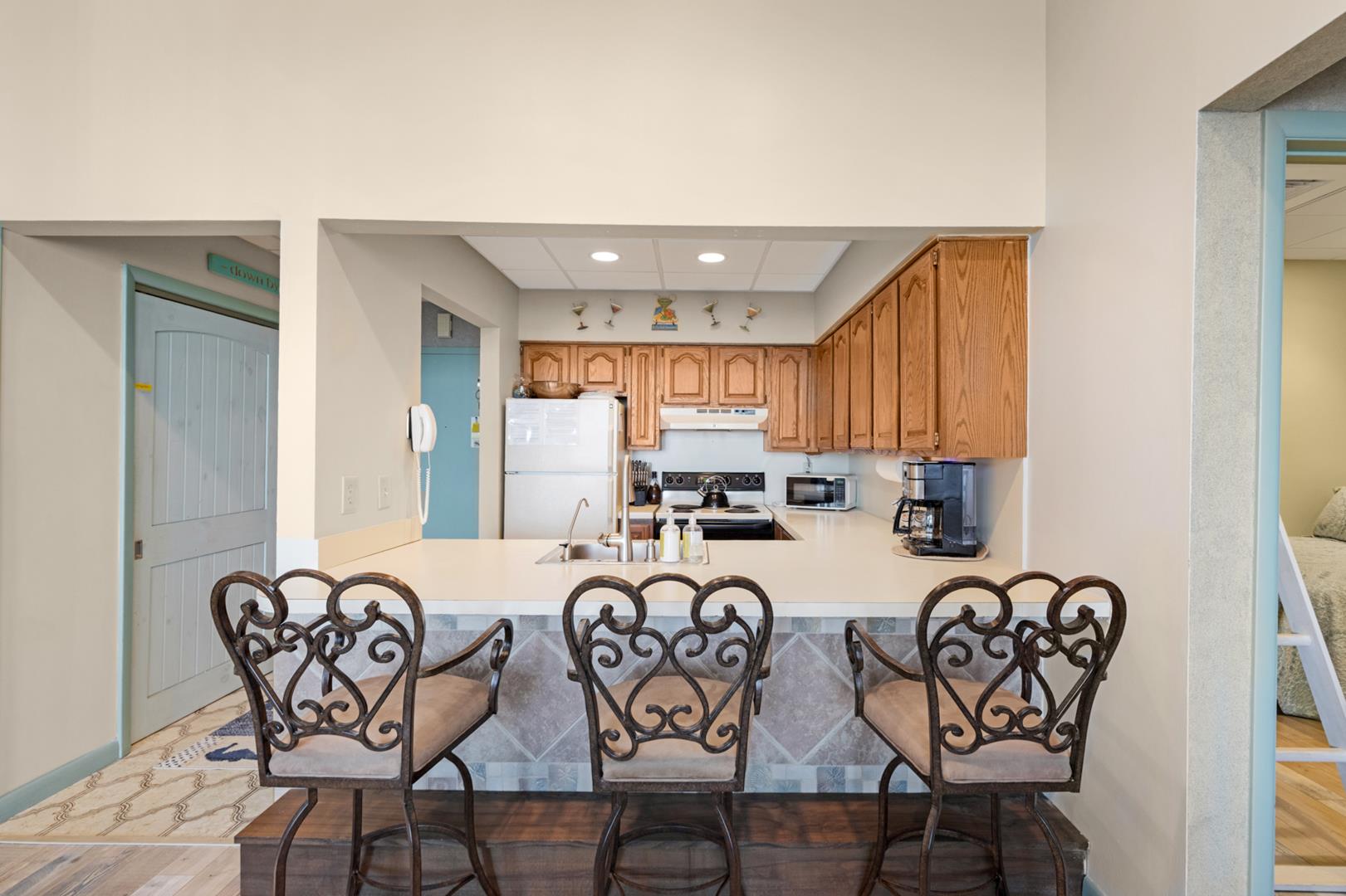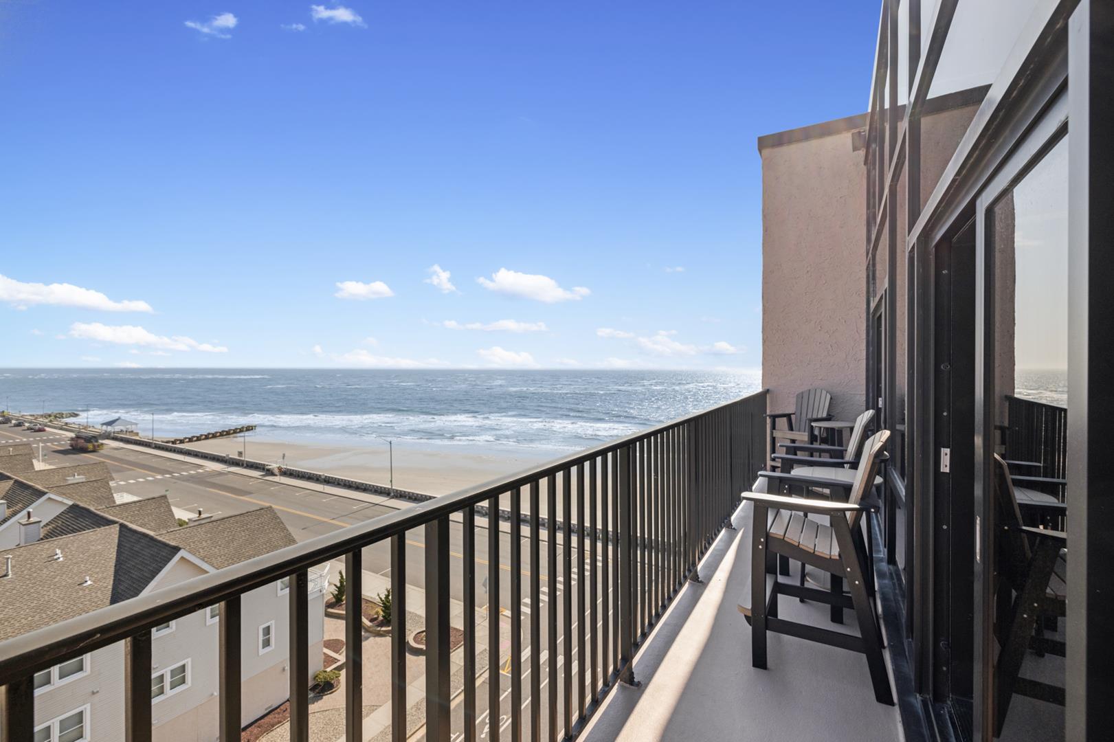 Experience beach front coastal luxury living at its finest in this beautiful two-bedroom, two-bathroom, beach front, top floor penthouse condo boasting double height ceilings and unparalleled ocean views. Wake up to stunning sunrise views that flood the spacious interior with natural light, creating a vibe of serenity and tranquility. Relax on your private outdoor balcony as you sip your morning coffee to the rhythm of the ocean waves. This condo can comfortably sleep 6 with two queen beds and a set of twin bunk beds. There is on-site parking as well as on-site laundry. Whether you're relaxing on your private balcony, soaking up the sun on the pool deck, or watching the sun gently break the horizon, this penthouse epitomizes coastal living at its finest. Call today to book your summer getaway!